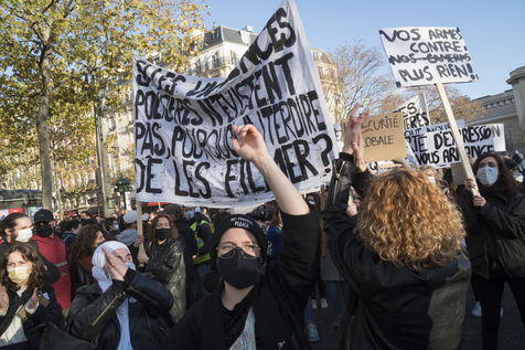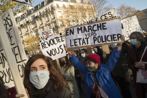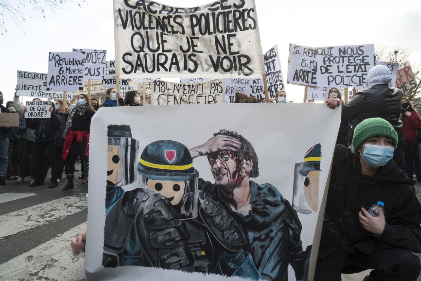 l'article 24 de la loi securite globale adopte par l'Assemblee nationale. Les journalistes et les organisations de defense des droits ont critique la nouvelle loi, arguant qu elle protege la police francaise de tout controle. Le projet de loi sur la securite vote par le Parlement francais erige en infraction la publication de photos ou de films de policiers s il a ete constate que l editeur avait l intention de porter atteinte a l integrite physique ou mentale de l agent. Ceux qui diffusent les images, que ce soit sur les reseaux sociaux ou via des sites d actualites, risquent un an de prison et une amende de 45 000 €.