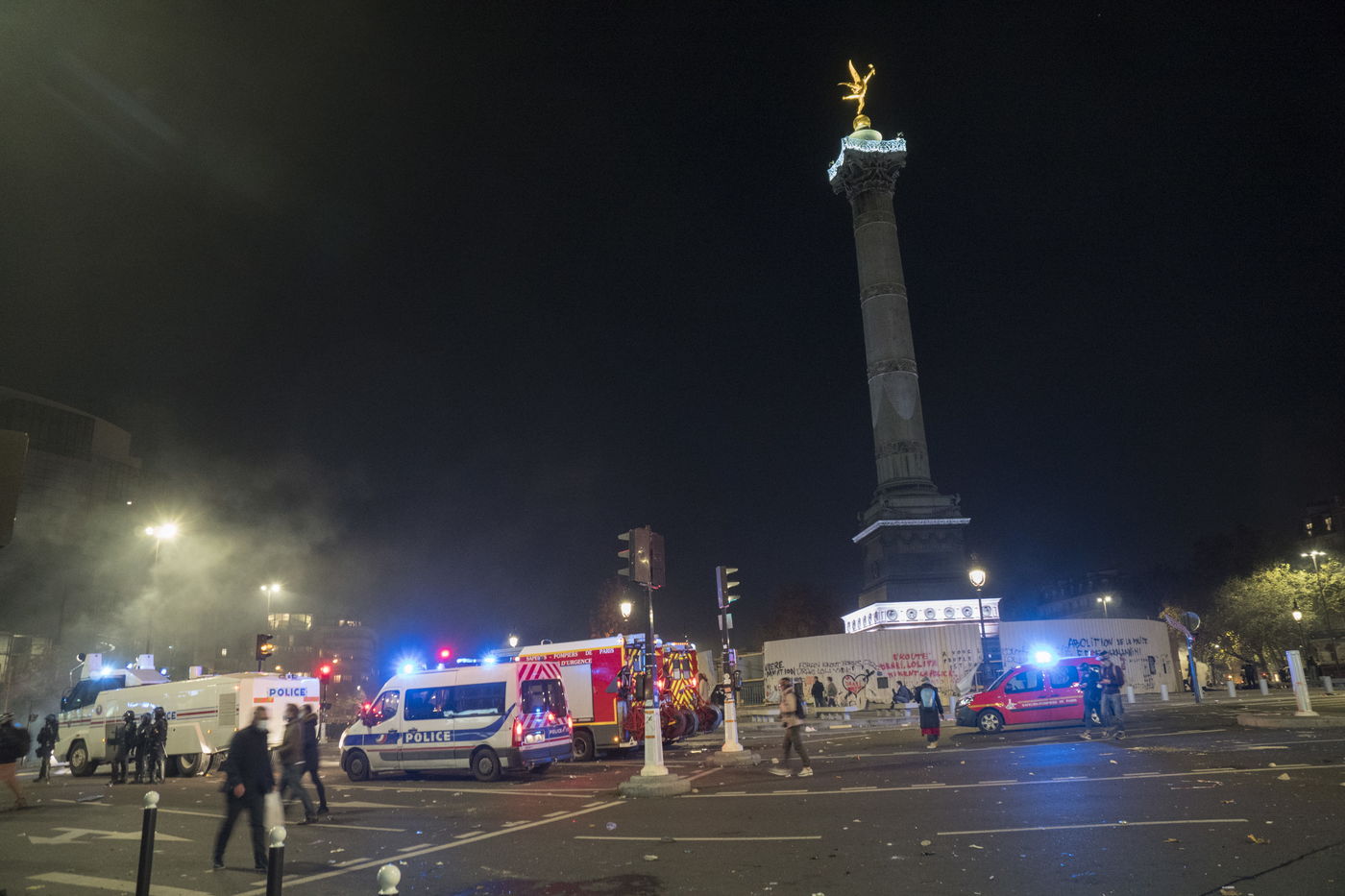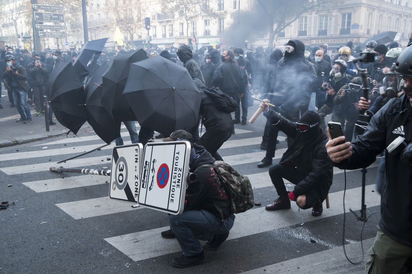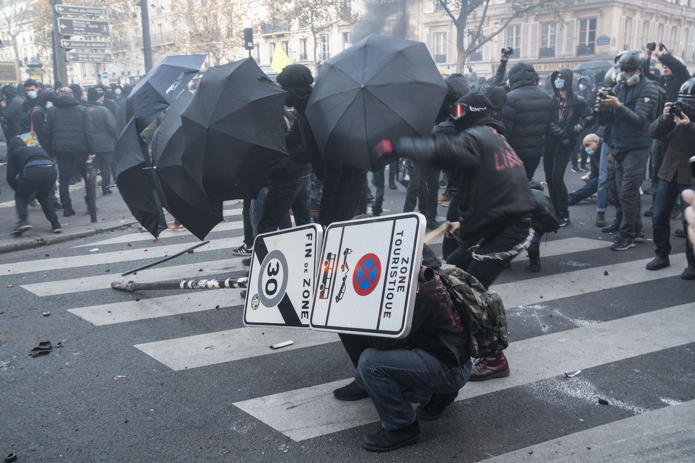 Confrontations between protesters and police. Thousands of demonstrators across France gathered for the Freedom March to protest against a new French law, Article 24 of the global security, which bans publication of images identifying French police officers. Journalists and rights organisations have criticised the new law.