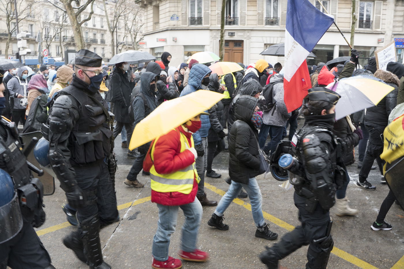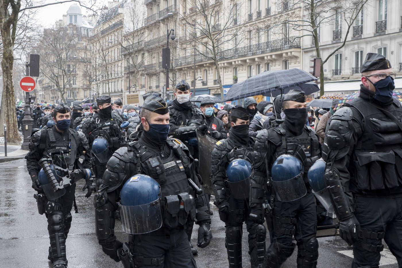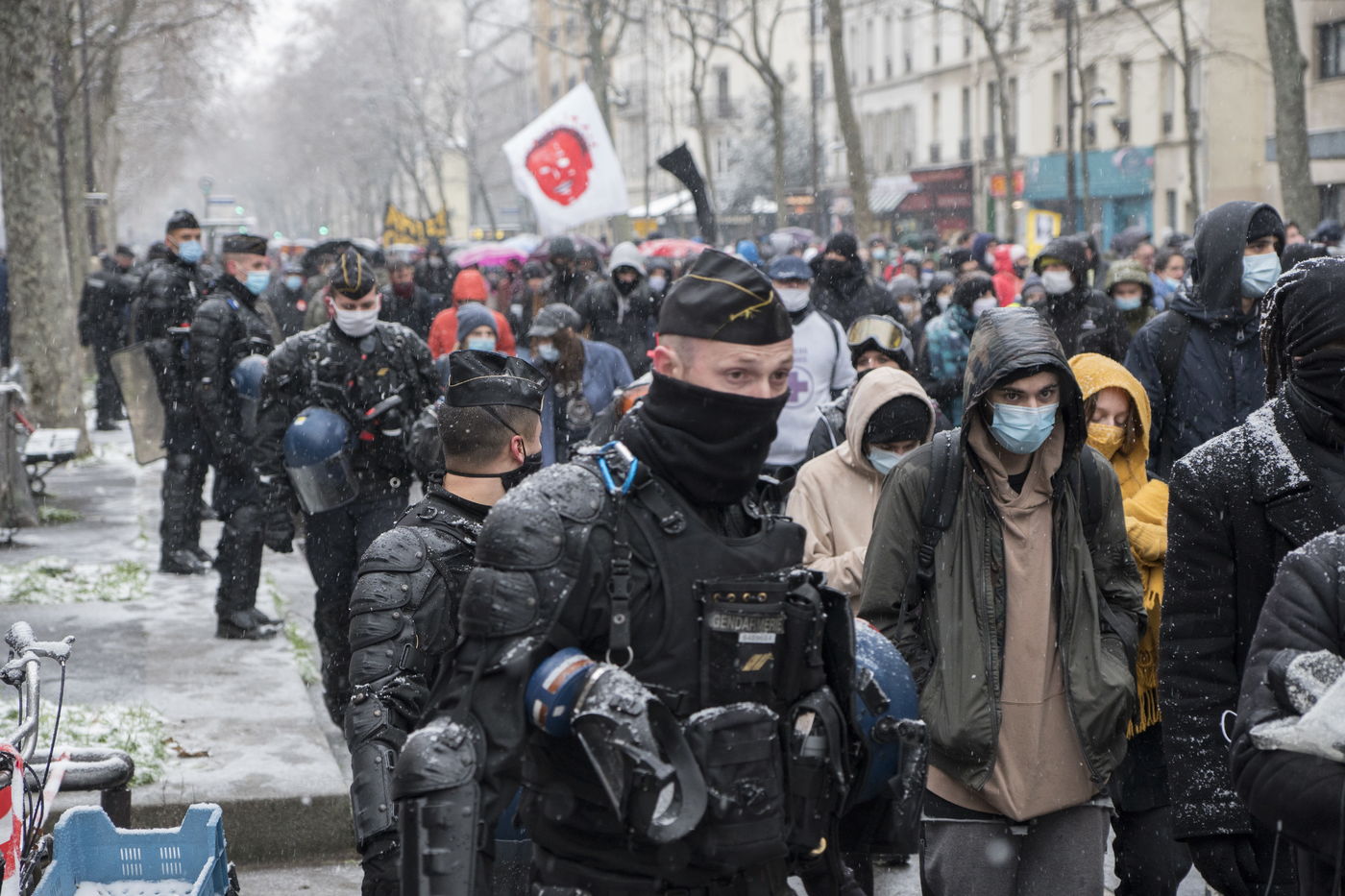 Des milliers de manifestants en France se sont rassembles pour la Marche des libertes pour protester contre le loi française, l article 24 de la Securite Globale, interdit la publication d images identifiant des policiers francais. Les journalistes et les organisations de defense des droits ont critique la nouvelle loi.