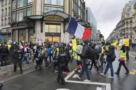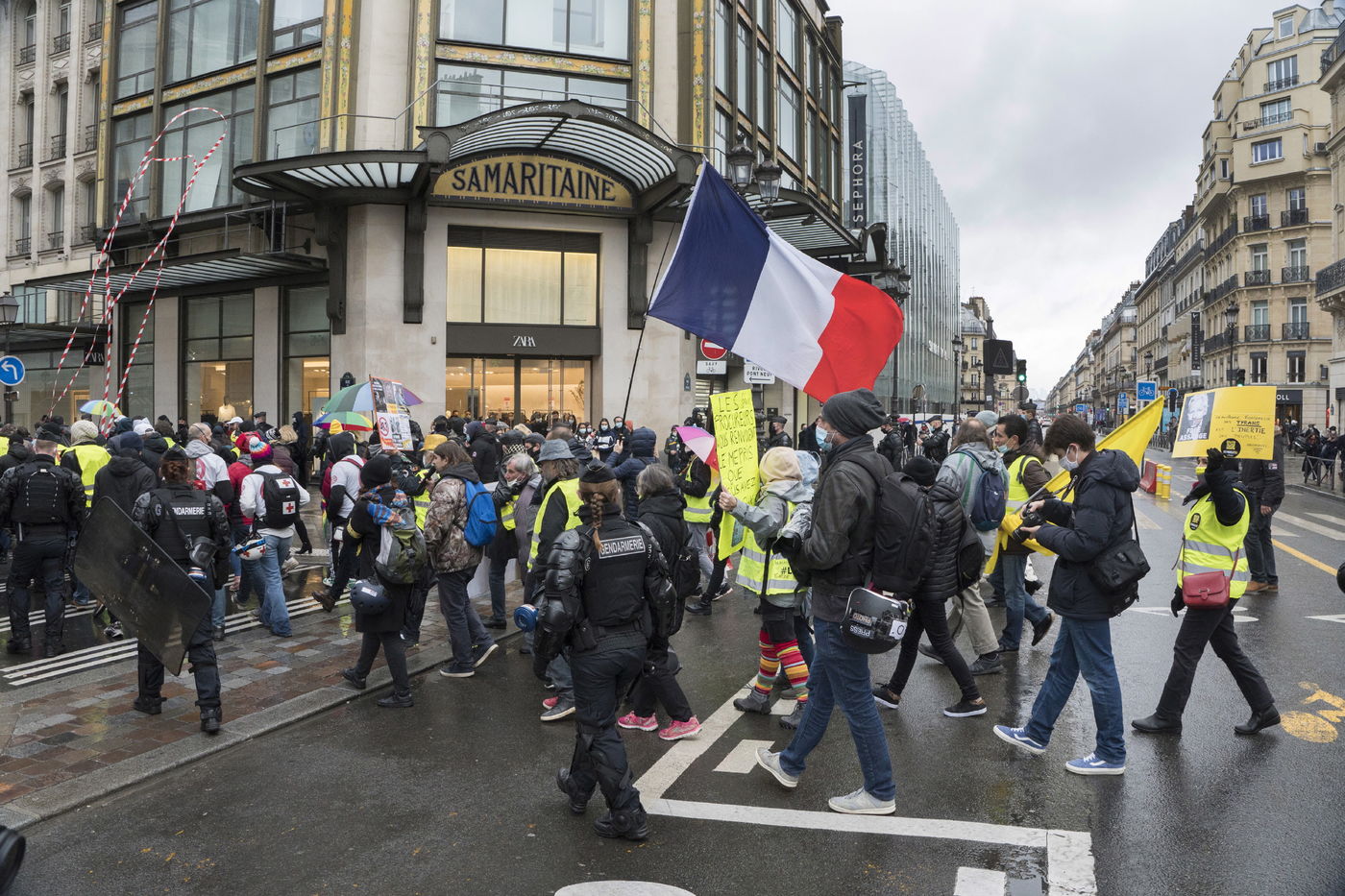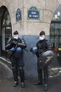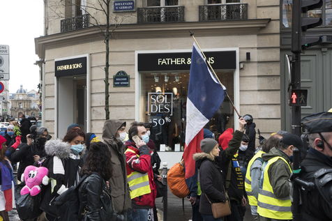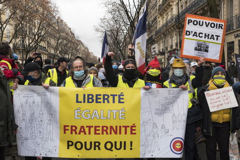 Thousands of demonstrators across France gathered for the United Freedom March to protest against Article 24 of the Global Security laws, which bans publication of images identifying French police officers. Journalists and rights organisations have criticised the new law. Heavy police presence at demonstration.