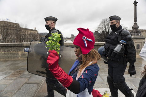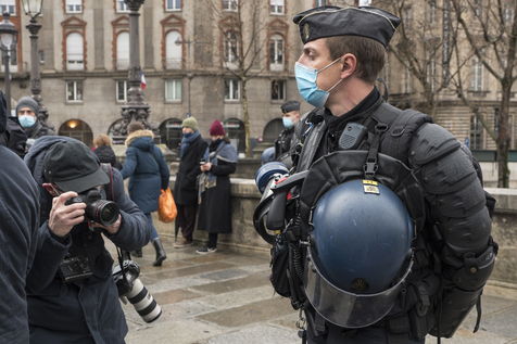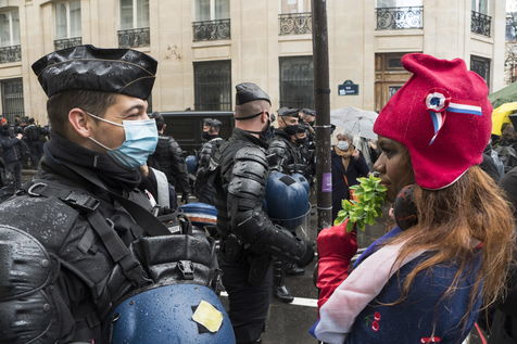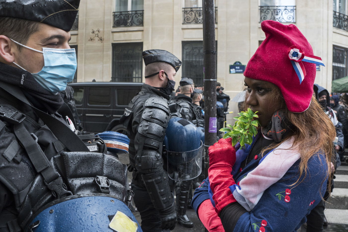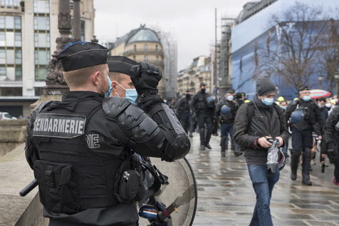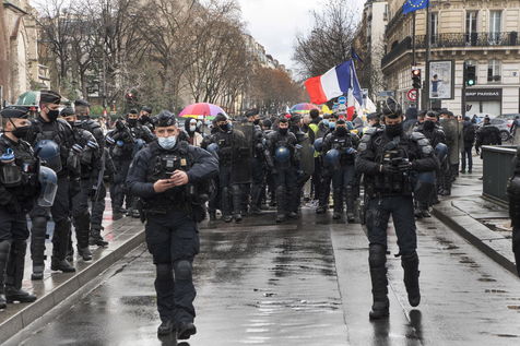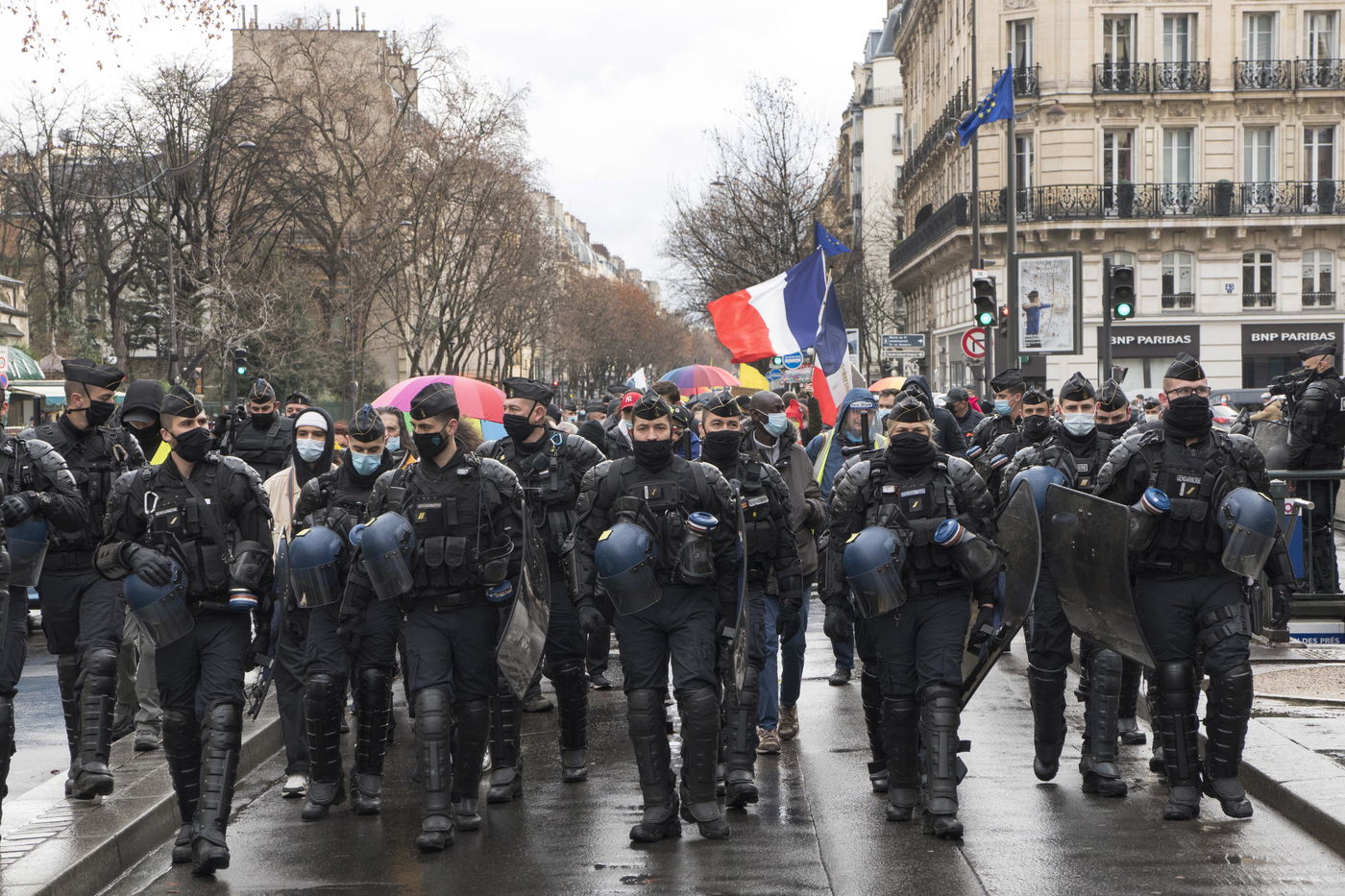 Des milliers de manifestants en France se sont rassembles pour la Marche Unitaire des libertes pour protester contre le loi française, l article 24 de la Securite Globale, interdit la publication d images identifiant des policiers francais. Les journalistes et les organisations de defense des droits ont critique la nouvelle loi. Forte presence policiere lors de la manifestation.