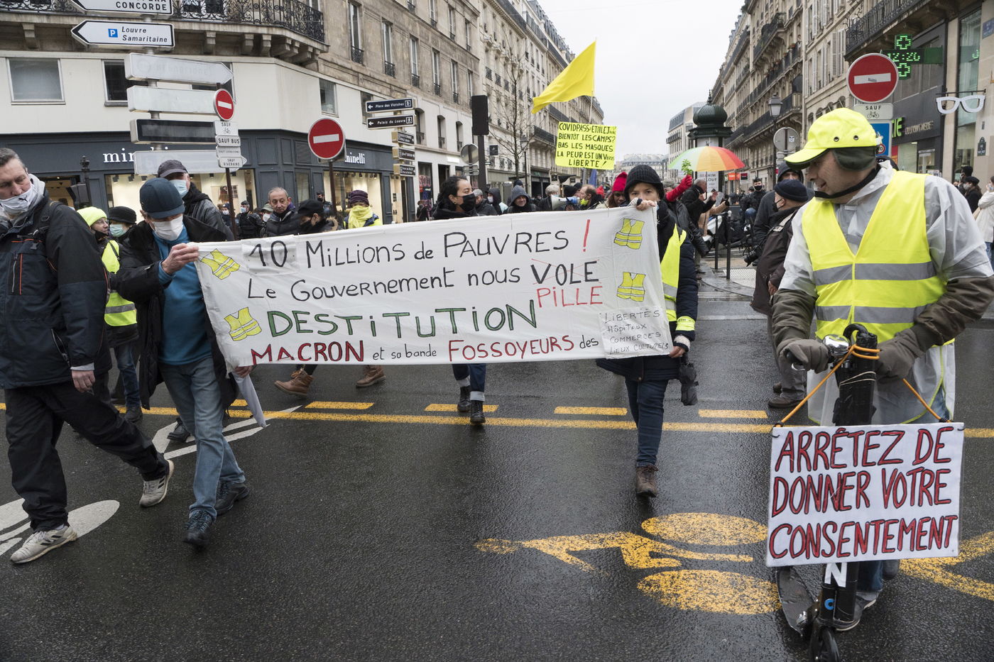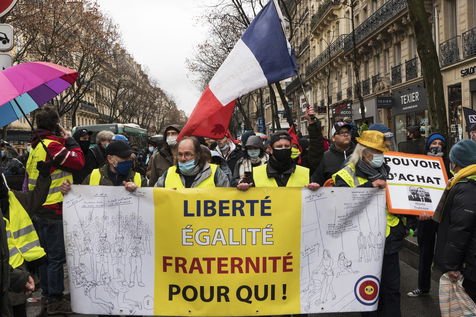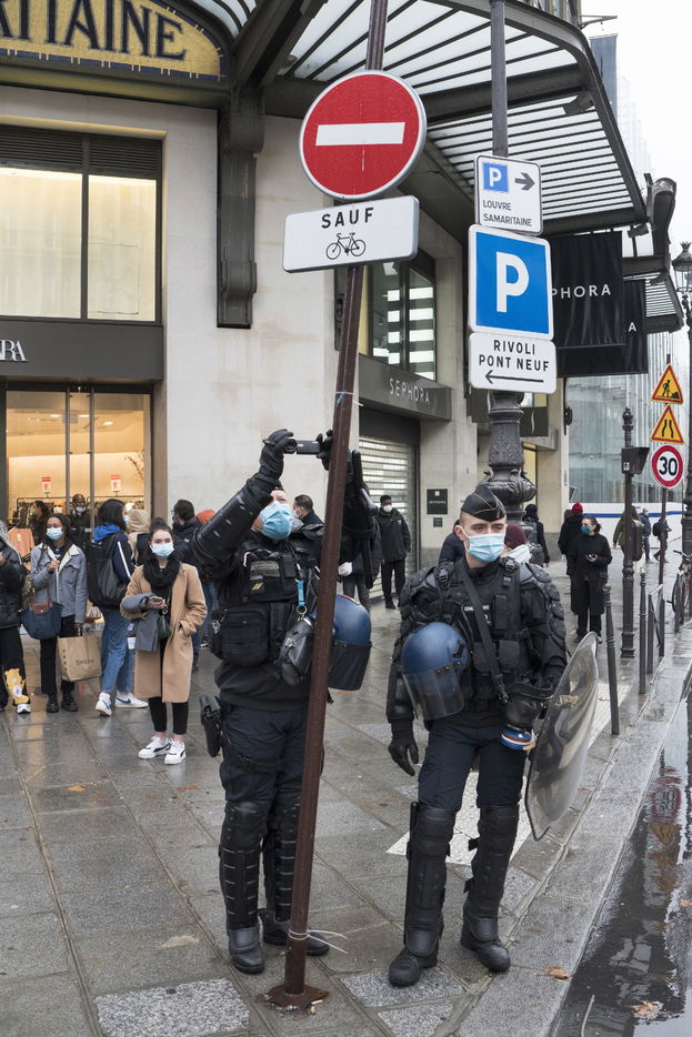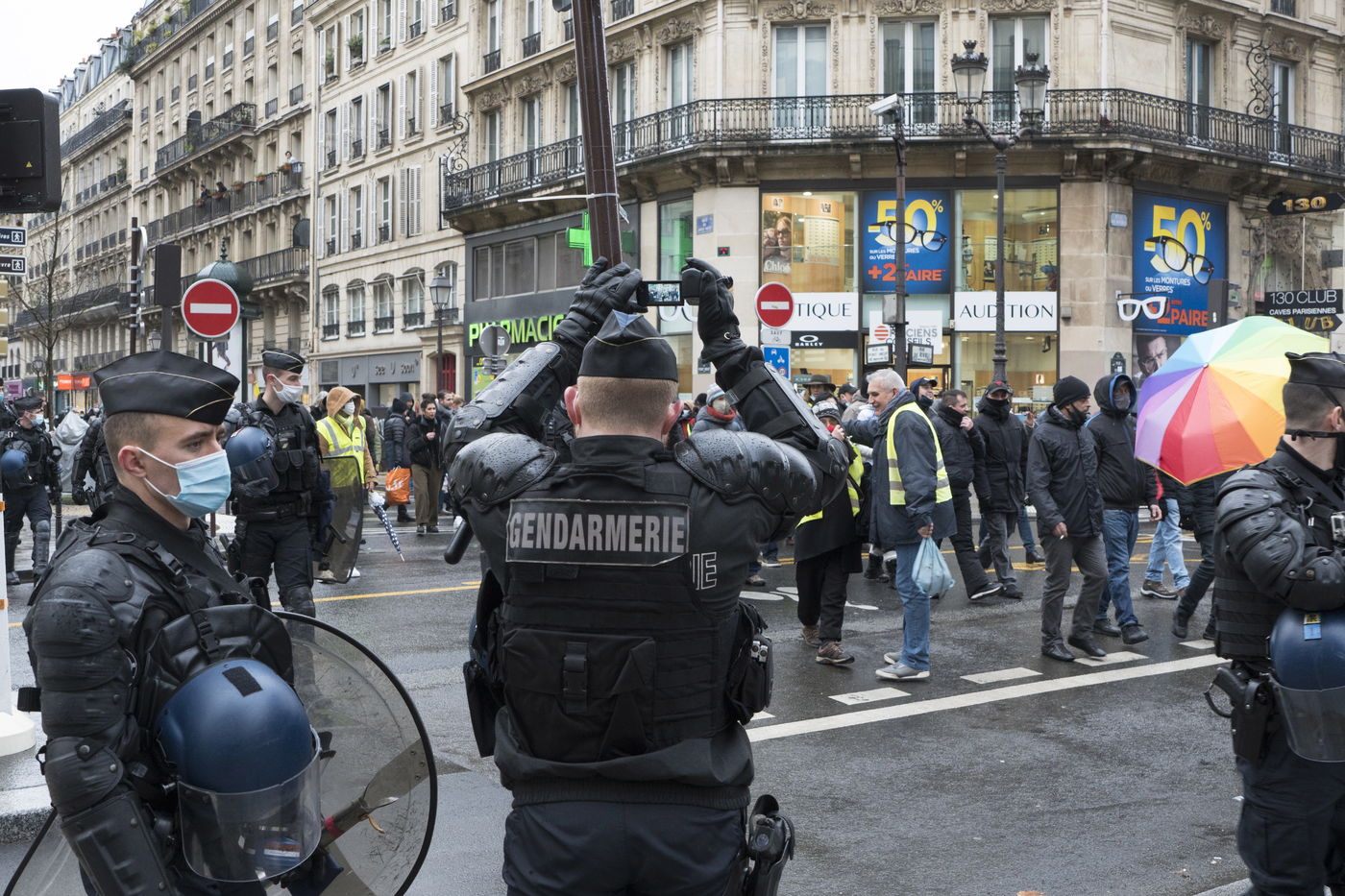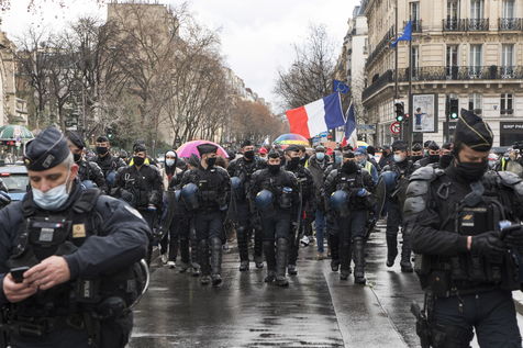 Des milliers de manifestants en France se sont rassembles pour la Marche Unitaire des libertes pour protester contre le loi française, l article 24 de la Securite Globale, interdit la publication d images identifiant des policiers francais. Les journalistes et les organisations de defense des droits ont critique la nouvelle loi. Forte presence policiere lors de la manifestation.