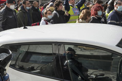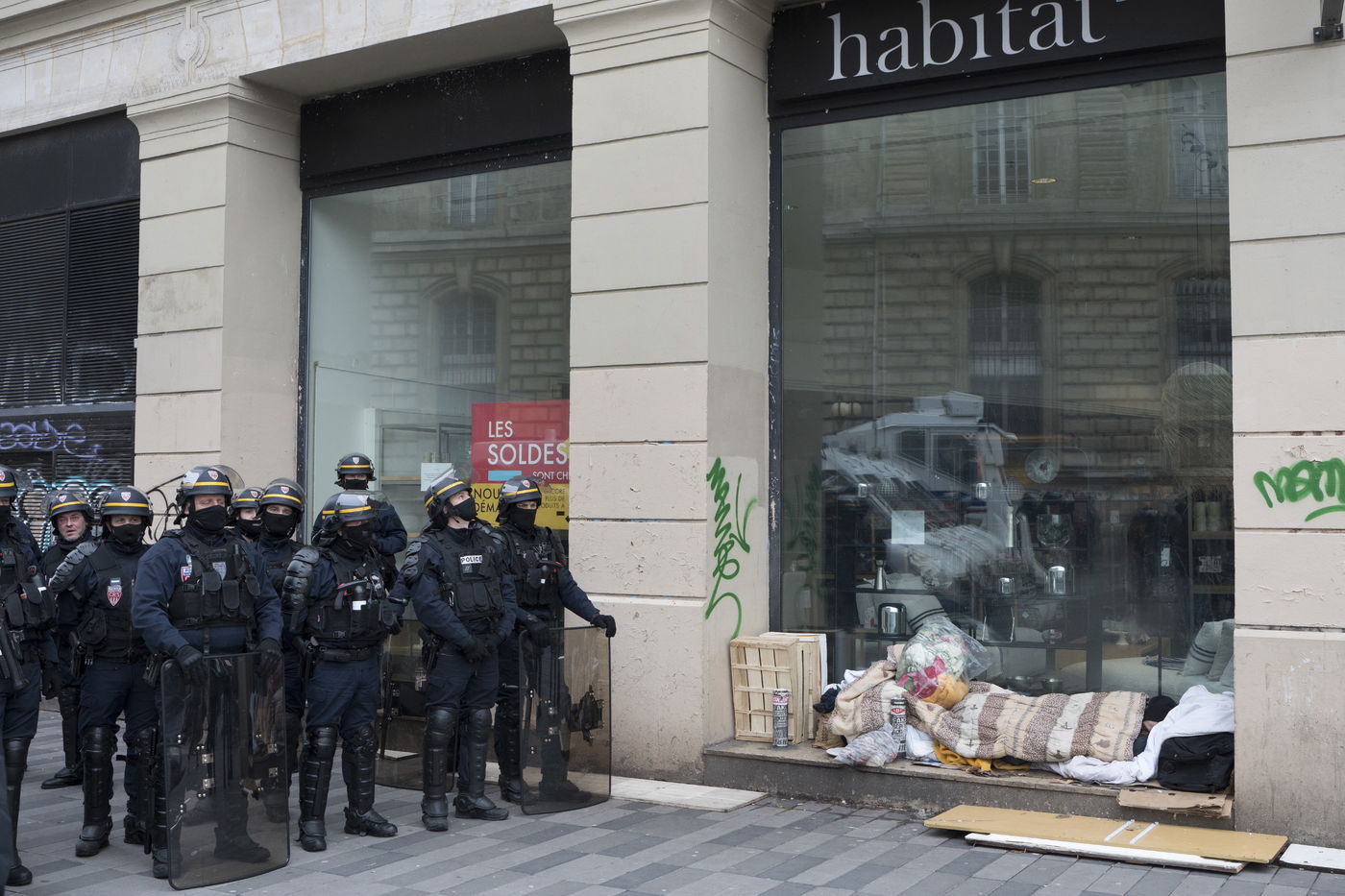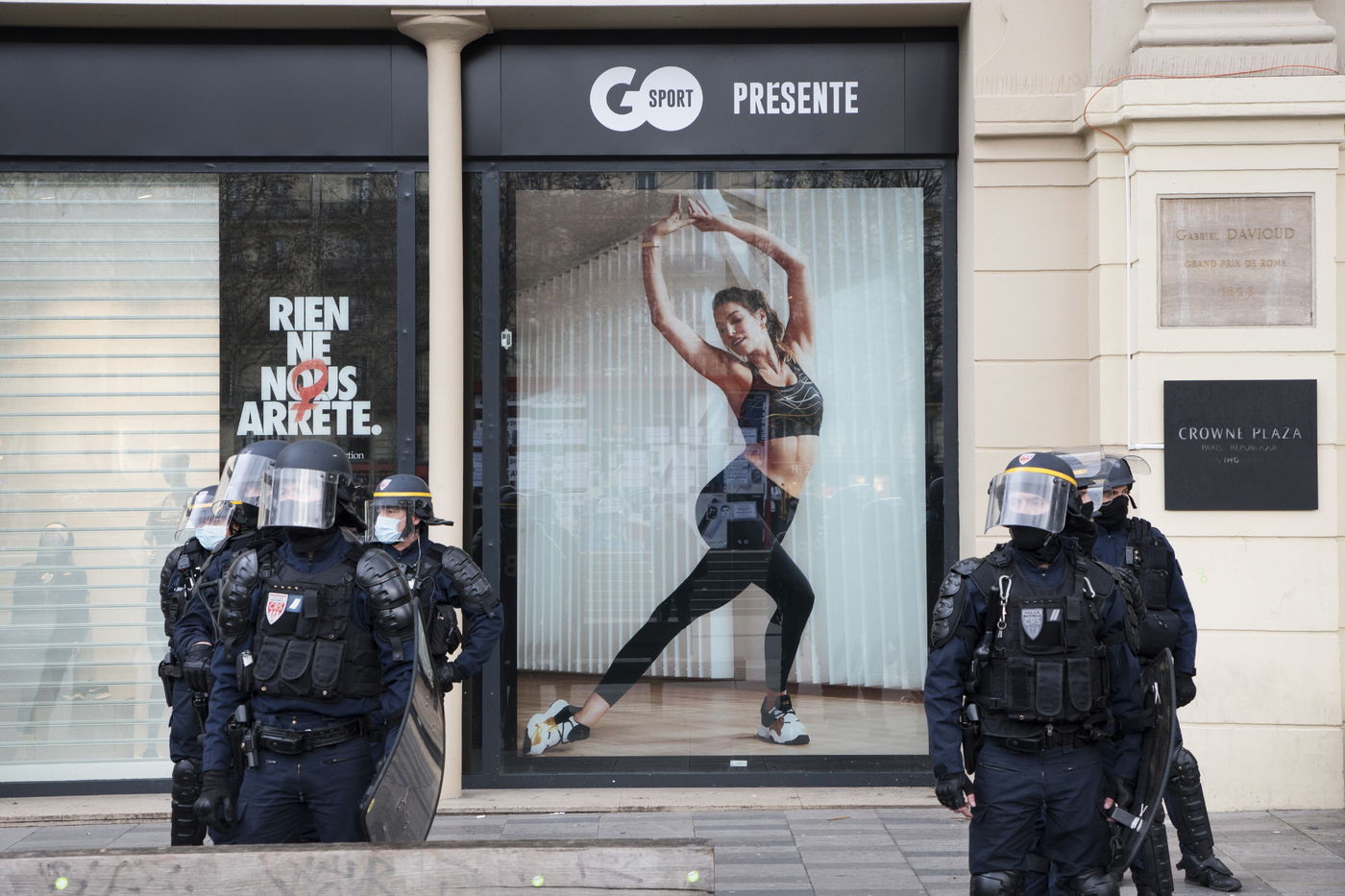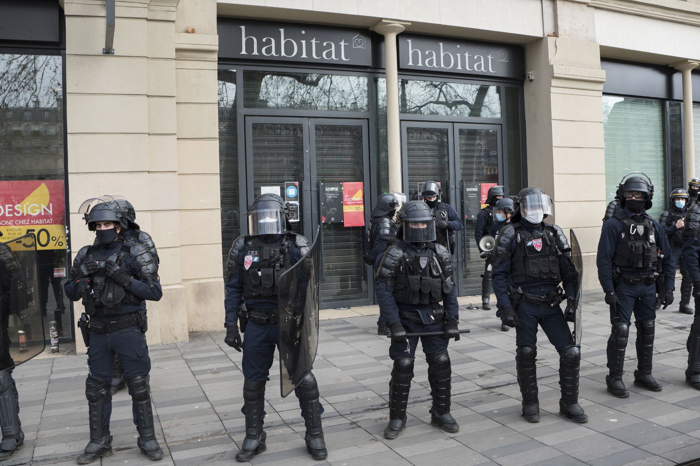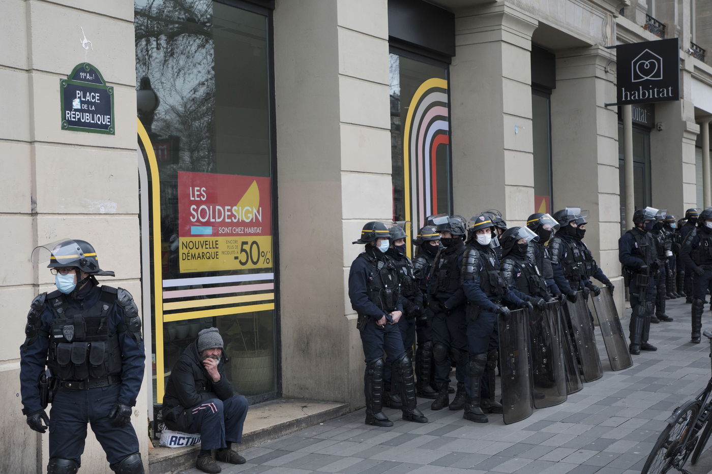 Strong police presence during the demonstration. Thousands of demonstrators in France gathered for the Unitary March of Freedoms to protest against French law, Article 24 of Global Security, bans the publication of images identifying French police officers. Journalists and rights groups criticized the new law
