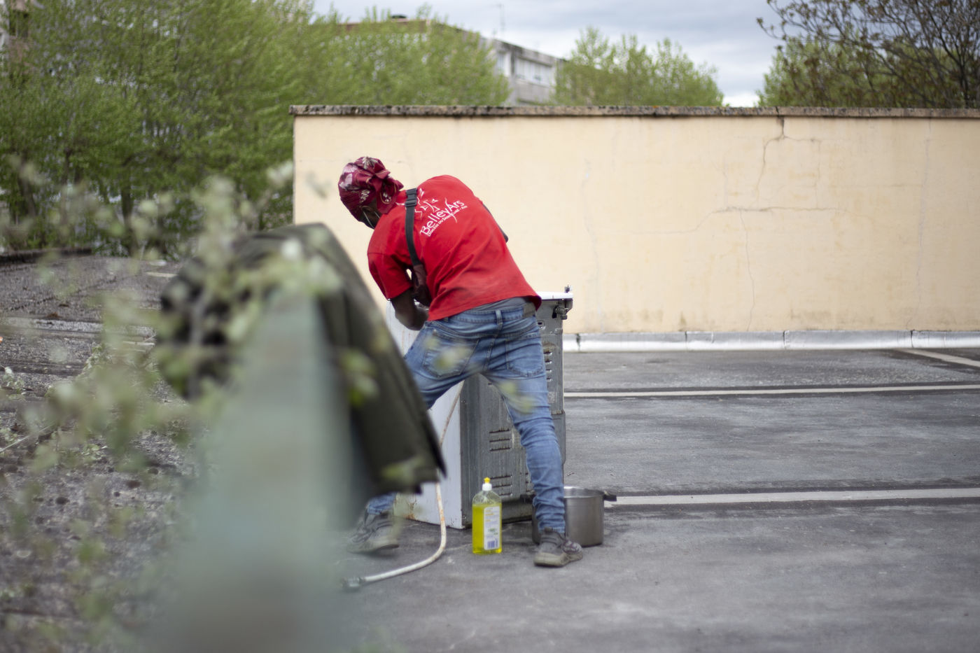 In Bourg-en-Bresse, the volunteers of the Collectif Solidarité Migrants came to bring basic equipment to the fourteen people living in an emergency house.