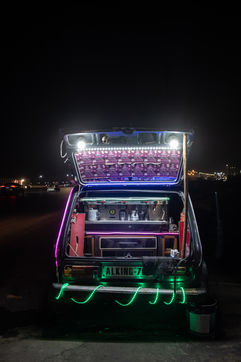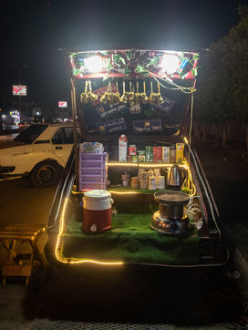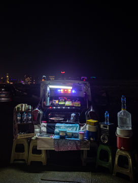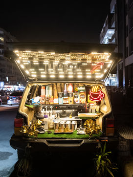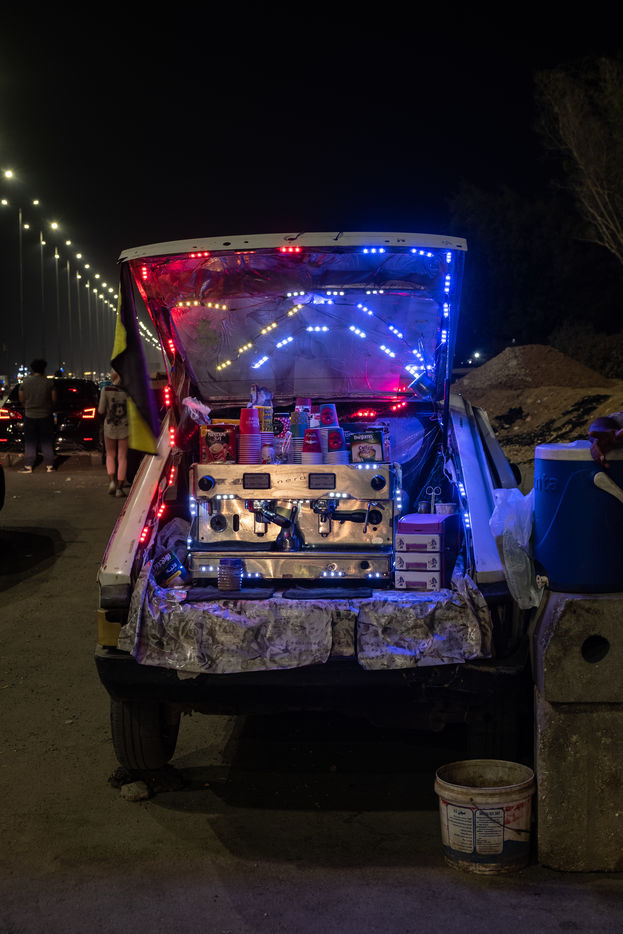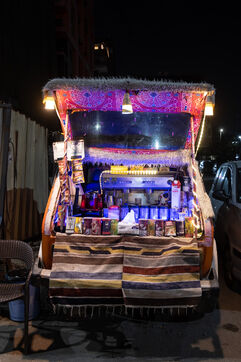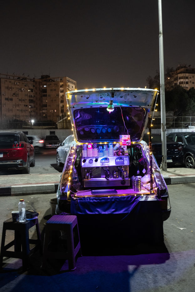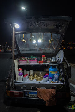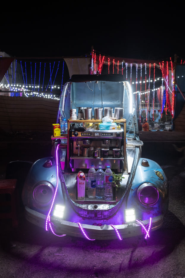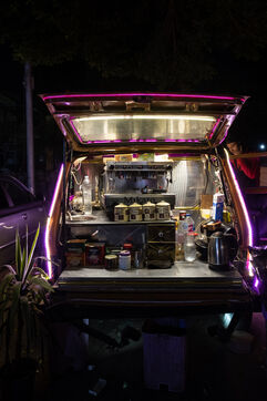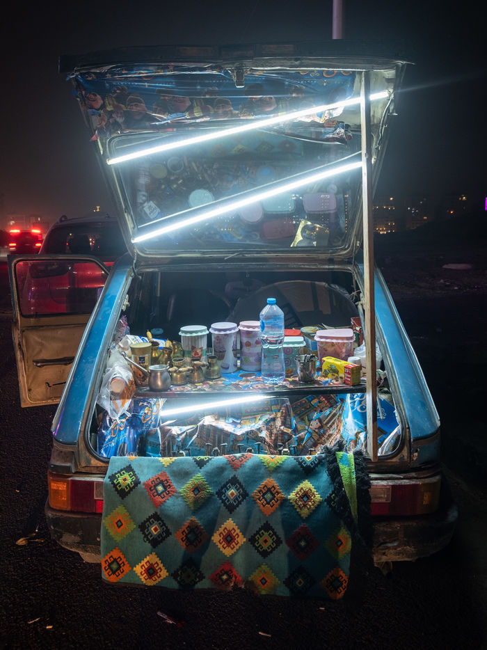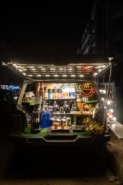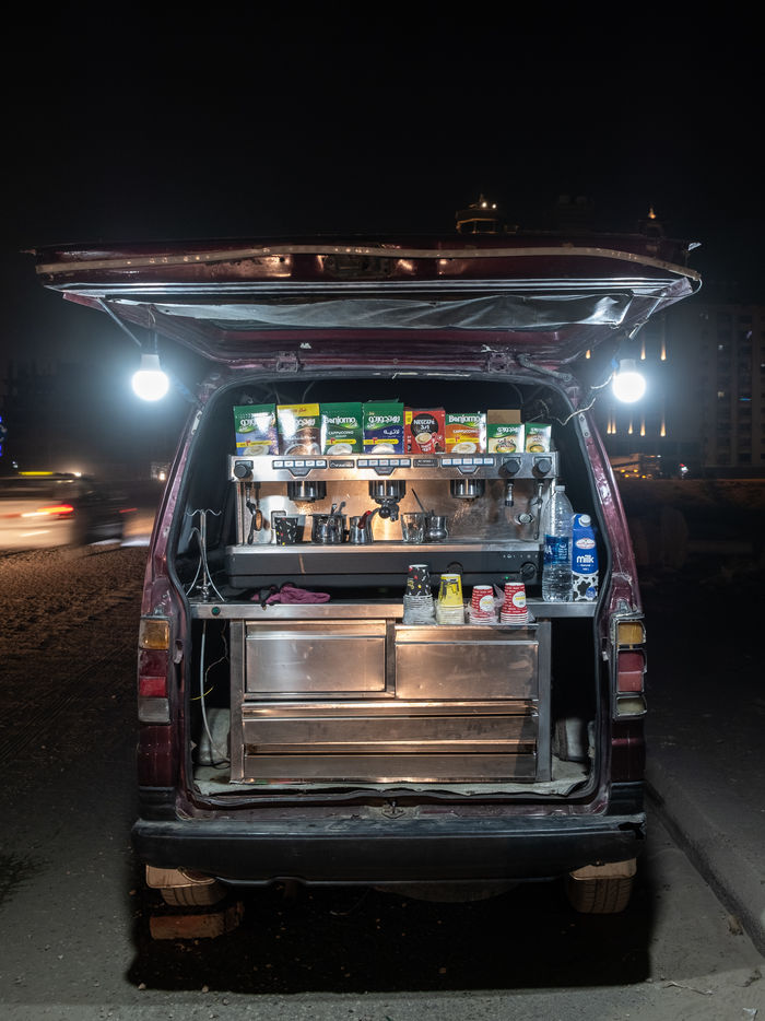 Facilement identifiables la nuit car elles sont illuminees, les voitures-cafe sont garees dans les quartiers residentiels et en peripherie urbaine et proposent toutes sortes de cafes et de boissons chaudes et traditionnelles.