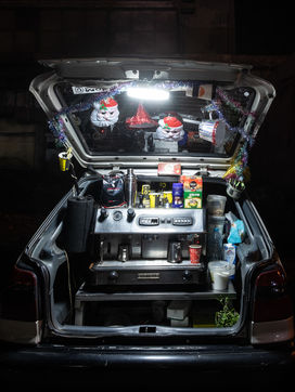 Easily identifiable at night because they are illuminated, the coffee cars are parked in residential areas and on the outskirts of the city and offer all kinds of coffee and hot and traditional drinks.