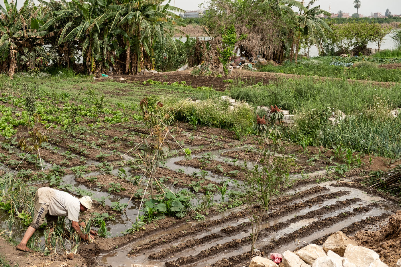 The city is gigantic, stretching for miles, lined with buildings where all the bridges are almost forbidden to pedestrians. I set out to walk down the Nile to its mouth in the north. Hundreds of kilometres during which you lose sight of the river, before finding it again; where you leave the main roads to drown in built-up areas, where you follow the irrigation canals under maintenance and the agricultural villages of the delta, where you meet farmers in their fields if you get out of the car...