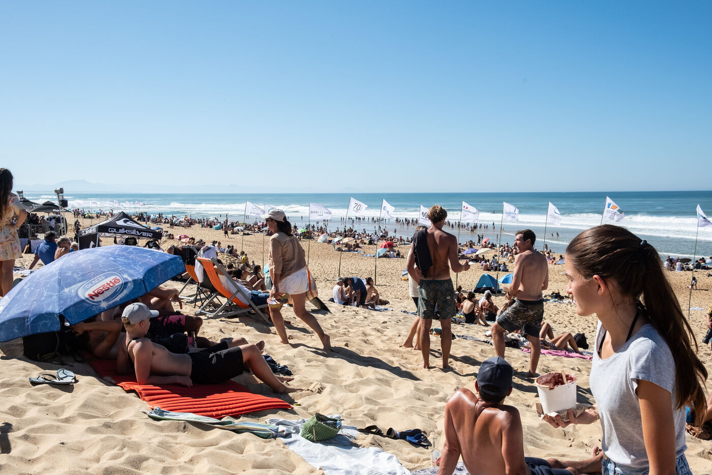 Sur le sable, ou dans l'eau, le festival attire des centaines de personnes qui viennent profiter du spectacle et du soleil, à l'affût des vagues et des stars du surf