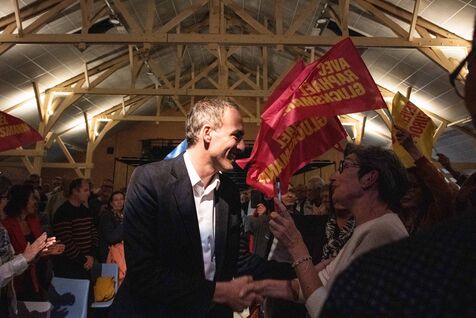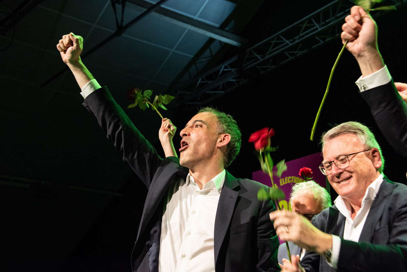 In the packed hall, the meeting ended with a throw of red roses, symbols of the Socialist Party.