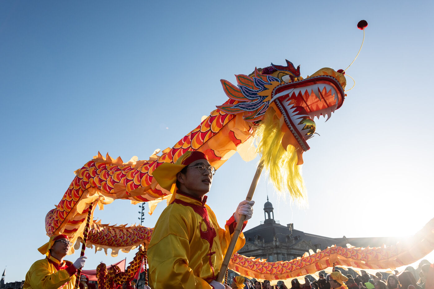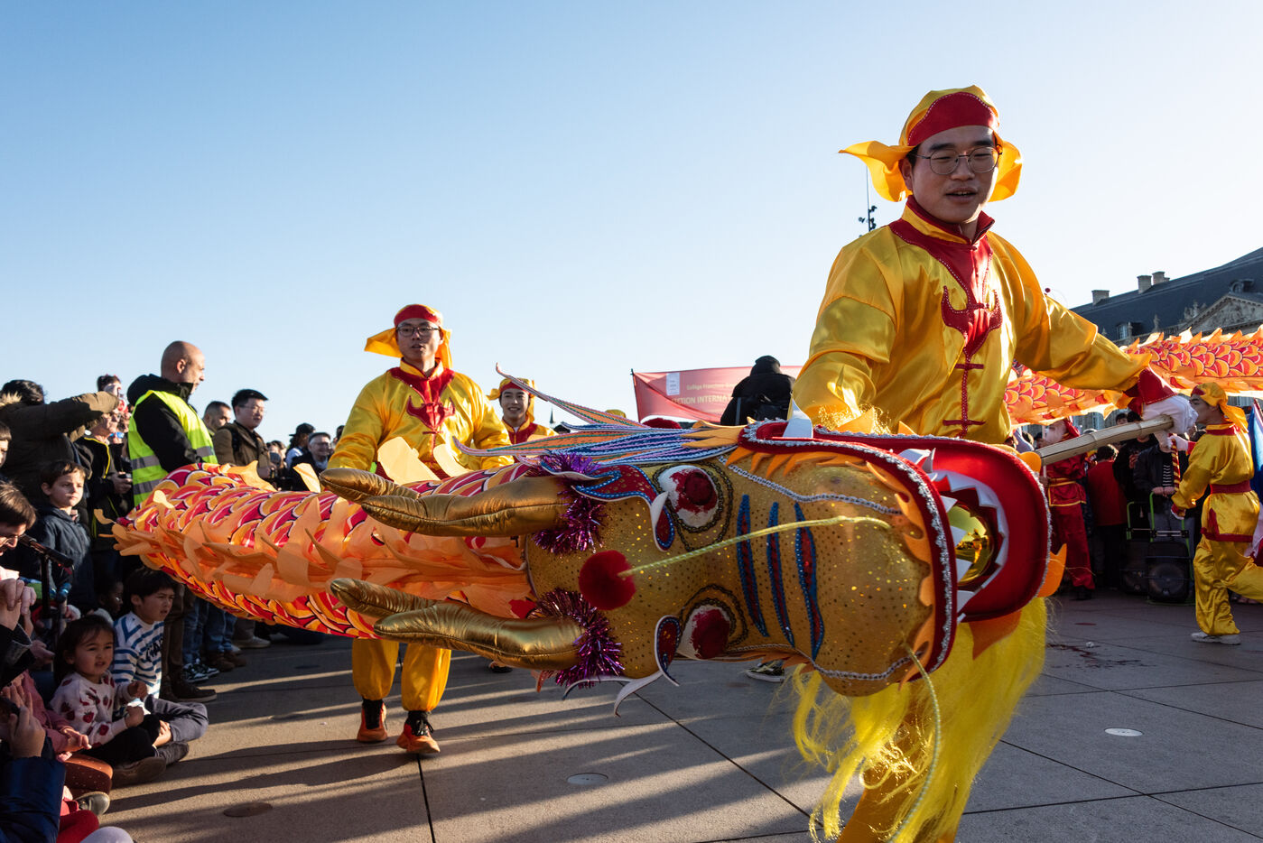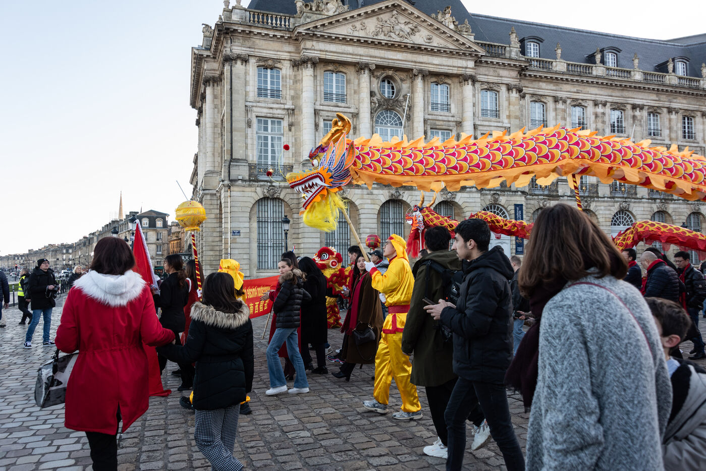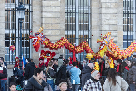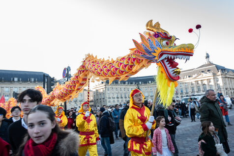 Starting in the Place de la Victoire, it ended with a gathering at the Miroir d'Eau for the traditional lion and dragon dance. A large crowd gathered for the occasion, under the late afternoon winter sun.