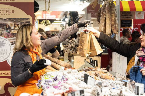 pavillon des produits et saveurs de France et pavillon des bovins, ovins, porcins, caprins - ambiance, visiteurs, animations, dégustations