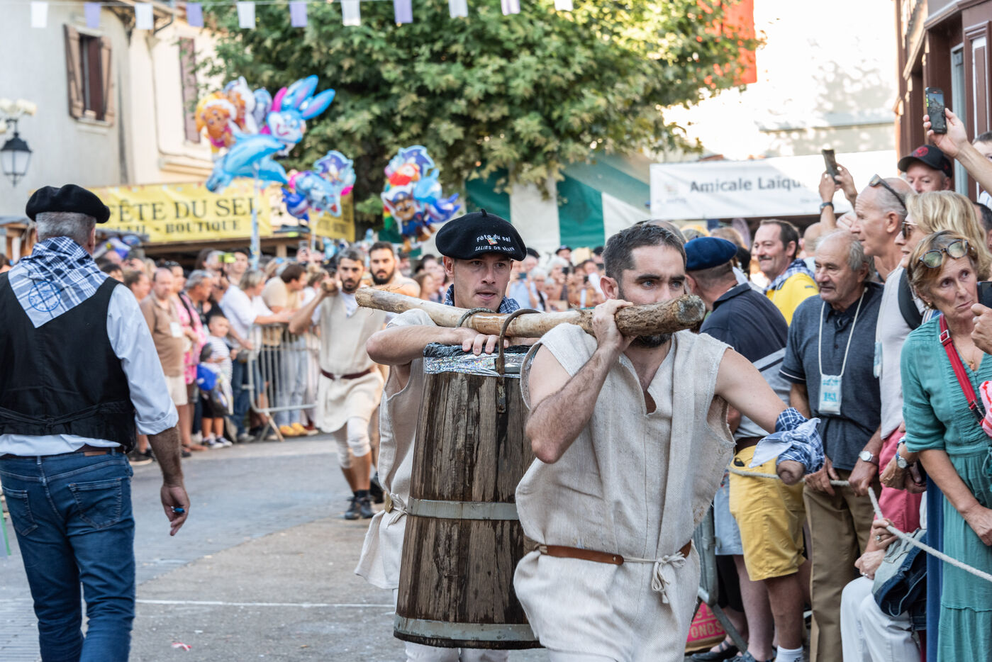 The atmosphere, parade of brotherhoods, induction of future ‘ambassadors’, demonstration of the Salesian quadrille, entertainment, parade of floats and world championship of sameaux carriers (wooden buckets traditionally used to transport salt water) marked the last day of the festival.