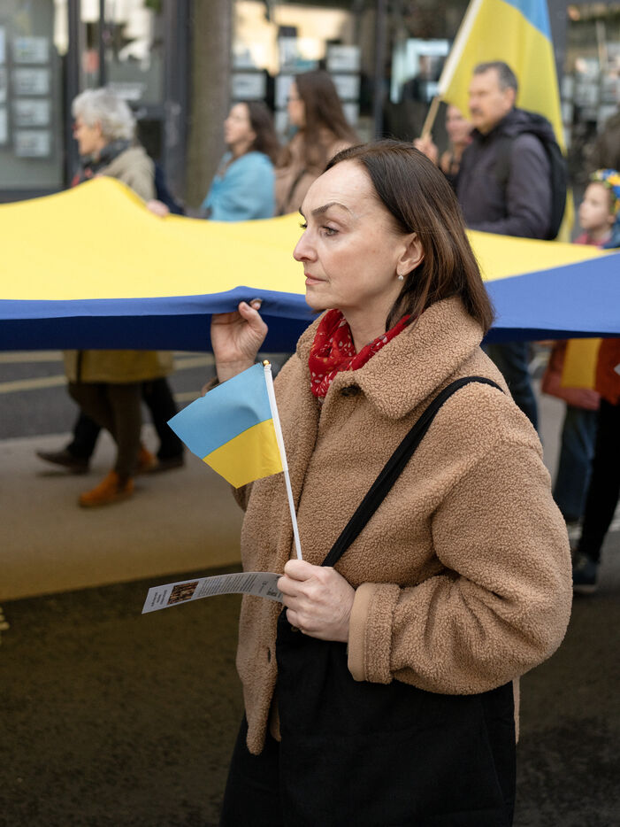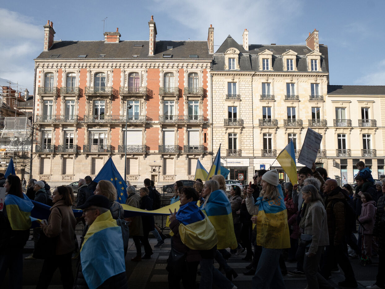 Manifestation pour l'Ukraine à Rennes (Ille-et-Vilaine) le 22 février 2025. Les manifestants protestaient contre l'invasion à grande échelle du pays lancée par la Russie en 2022.
