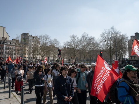 Students and teachers protested to demand more funding for French universities and public research in Rennes in the Ille-et-Vilaine department of France in March 27, 2025. Many unions such as the CFDT, the CGT, FO or Solidaires called to demonstrate.