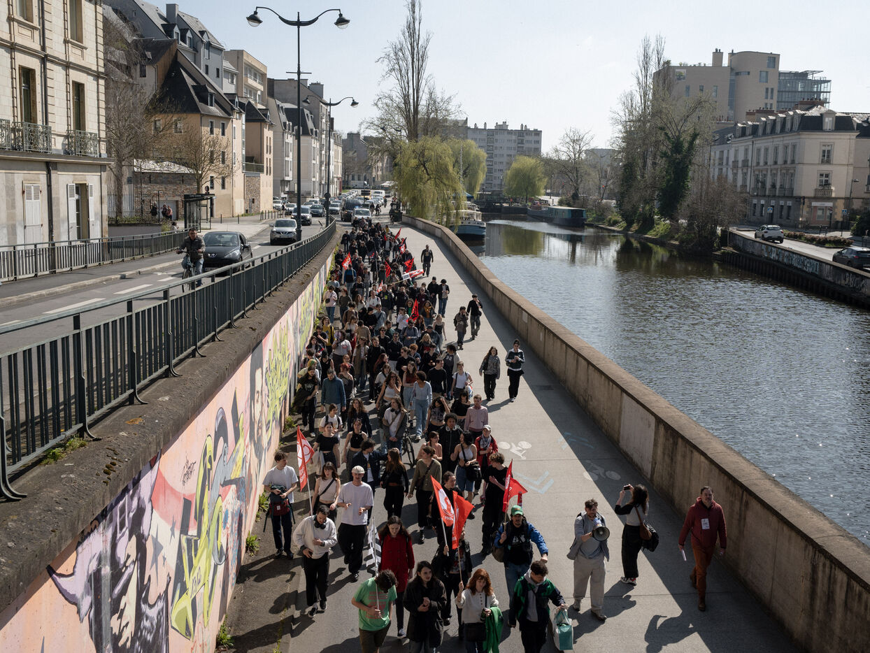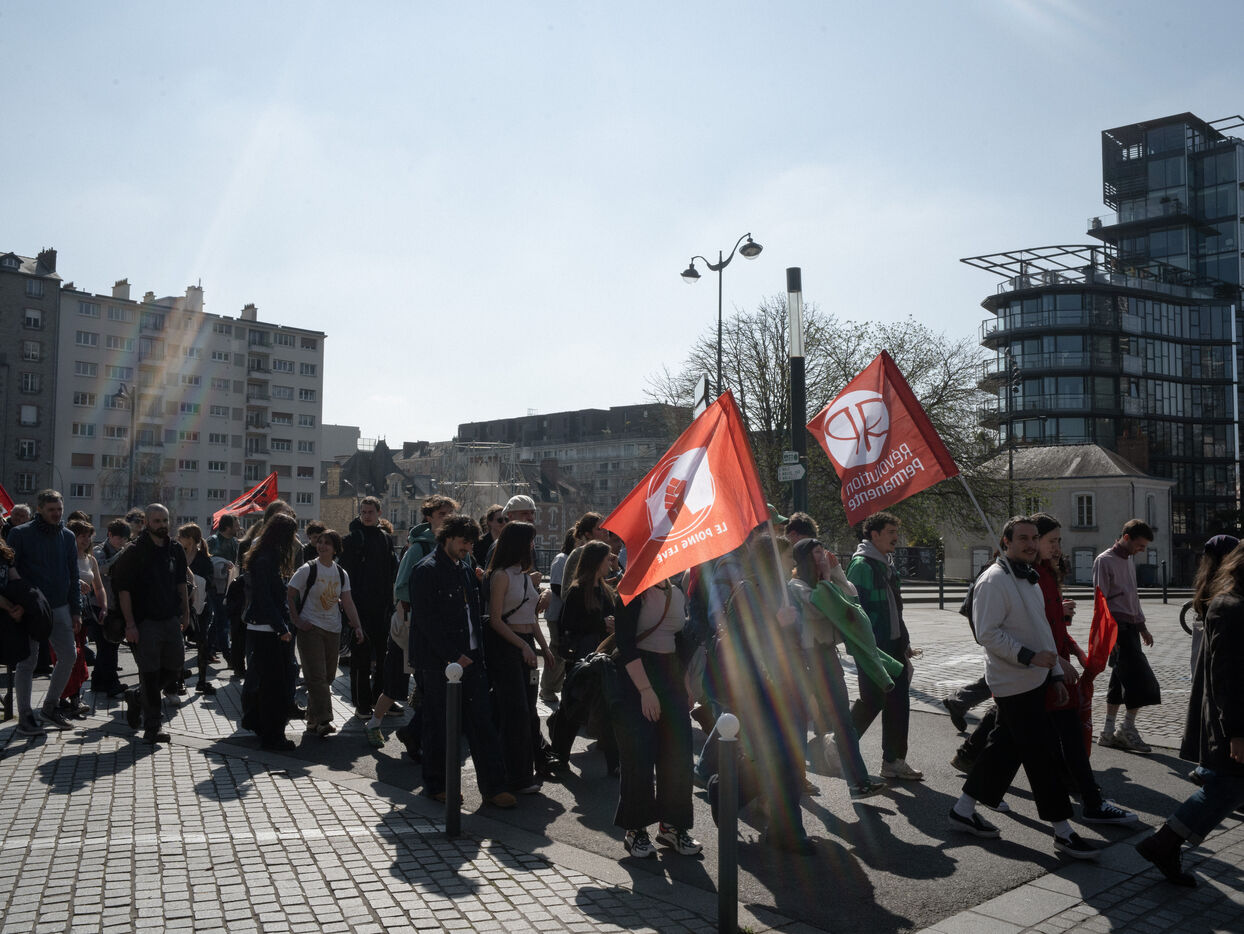 Étudiants et professeurs ont manifesté pour exiger plus de fonds pour l'université et la recherche à Rennes (Ille-et-Vilaine), le 27 mars 2025. De nombreuses organisations syndicales comme la CFDT, la CGT, FO ou Solidaires avaient appelé à manifester.