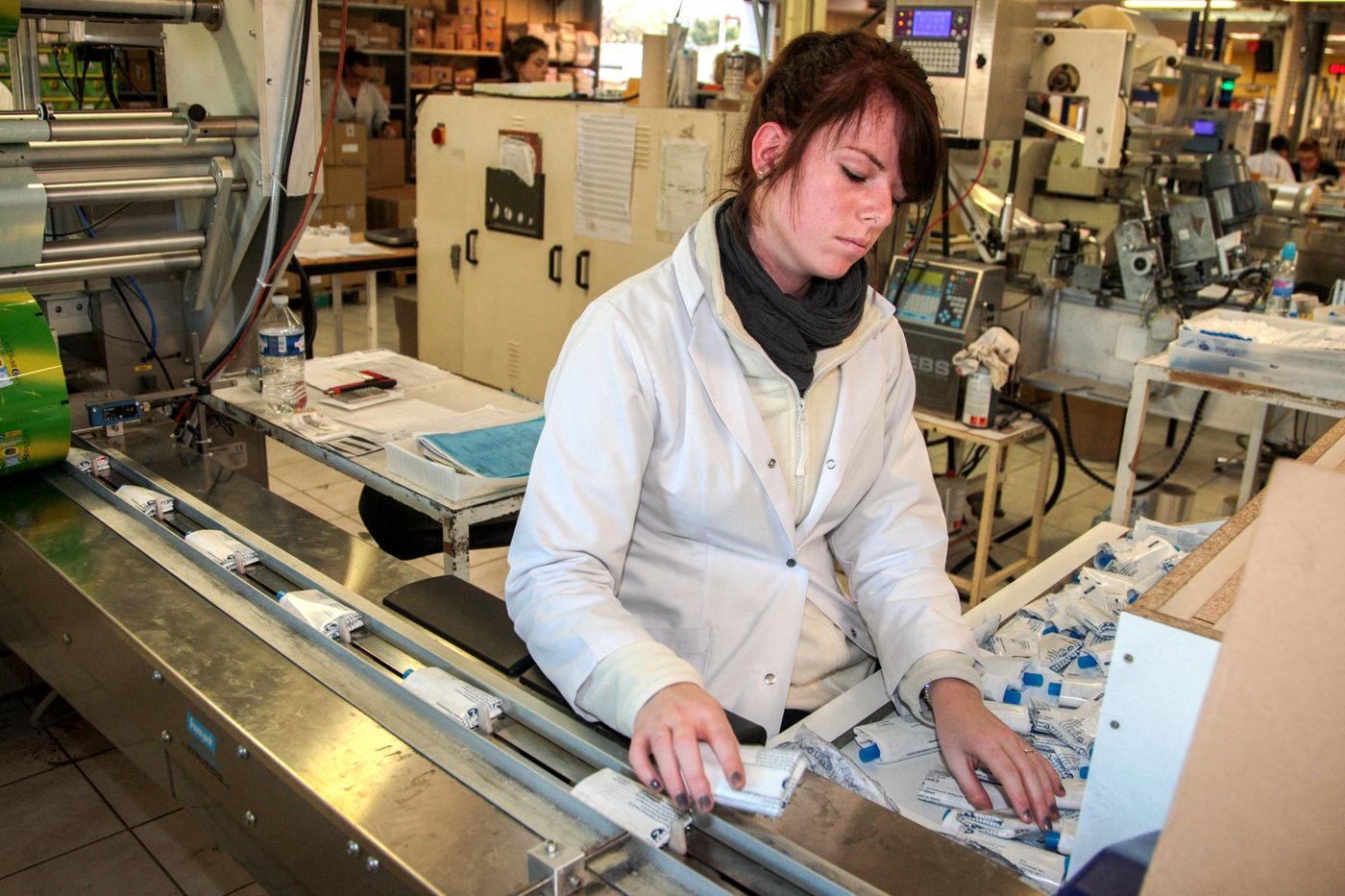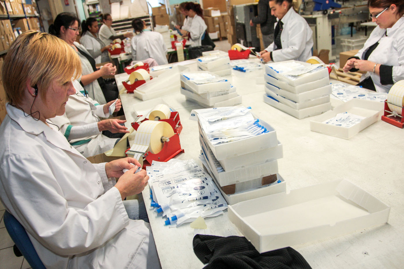 Fabrication, mise en carton, vérification des normes... Les ethylotests de marque Contralco sont confectionnés par des équipes très féminines. Ces petites mains qui font du travail à la chaine en rythme 3X8 sont intérimaires, en stage d'été, mères de famille, femmes proches de la retraite ou en CDI depuis plus de 5 ans.
