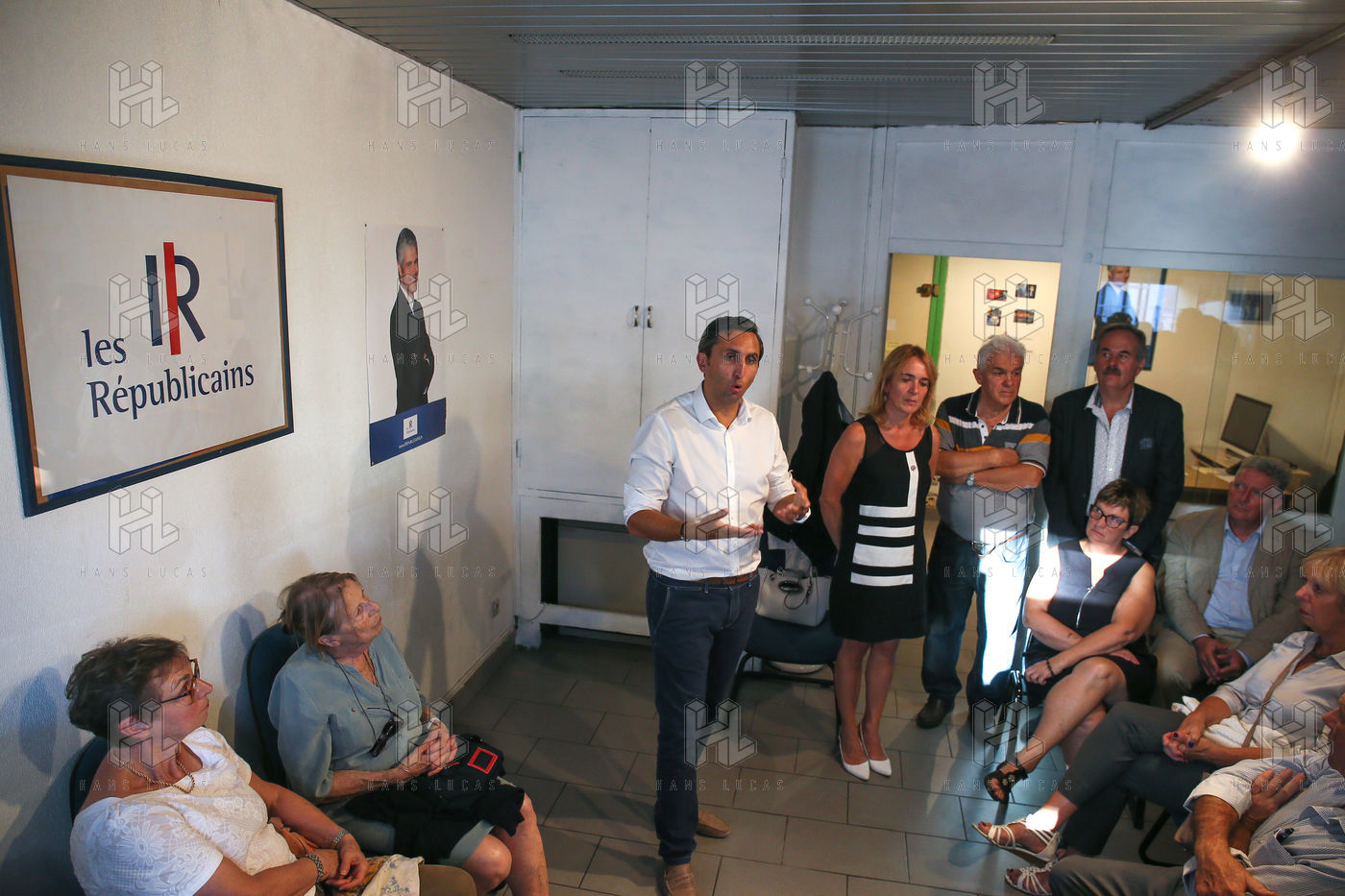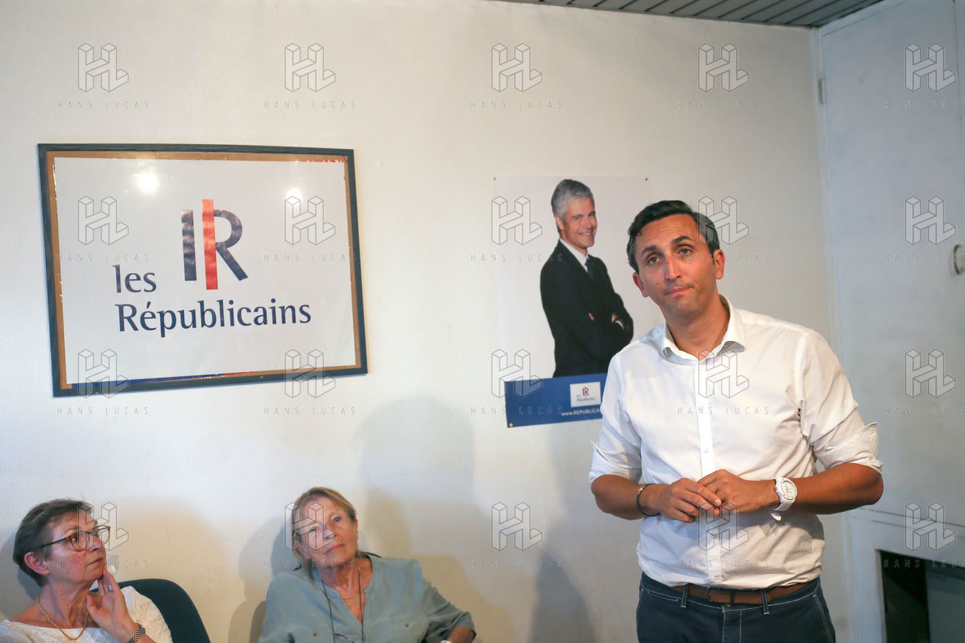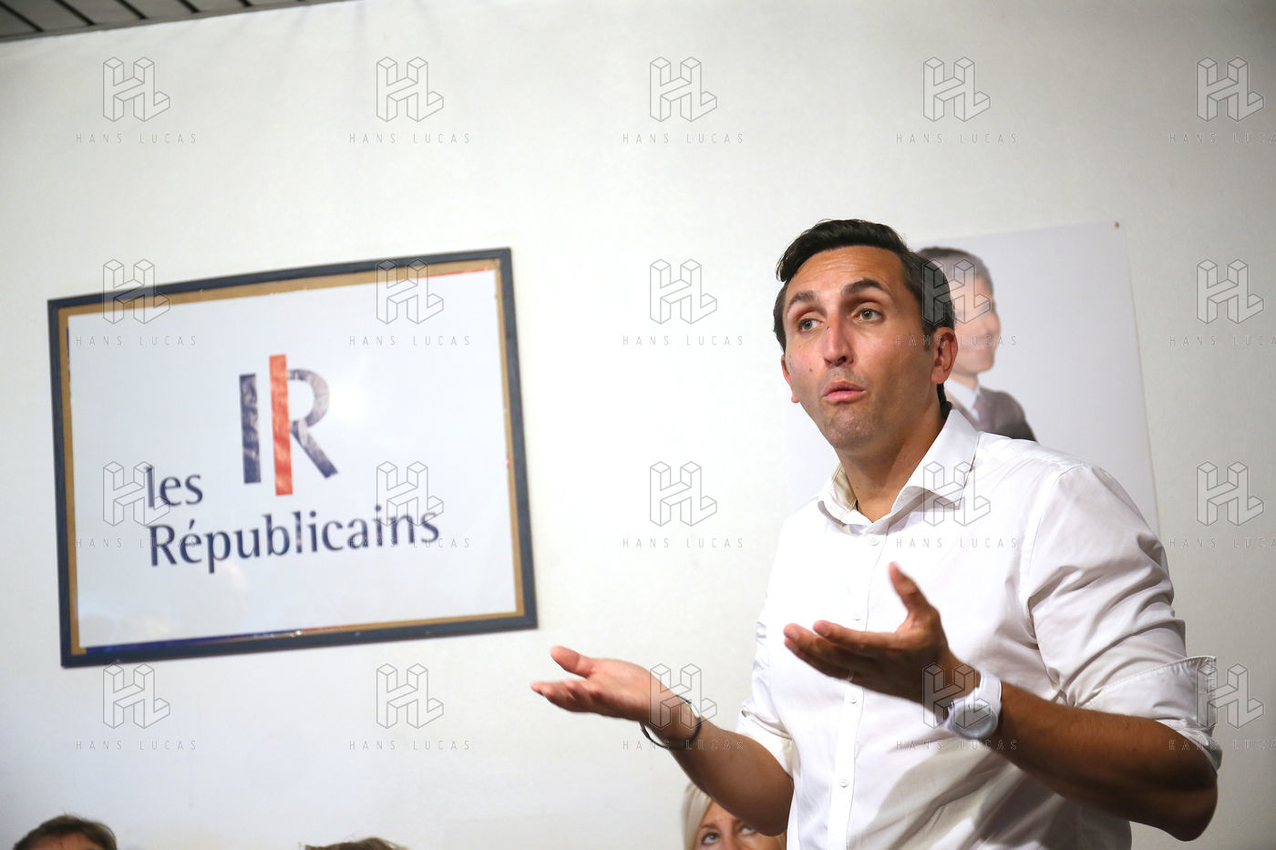 Le député du Vaucluse Julien Aubert organie une réunion publique avec des militants Les Républicains de la Drôme dans le cadre de sa candidature à la présidence du parti.