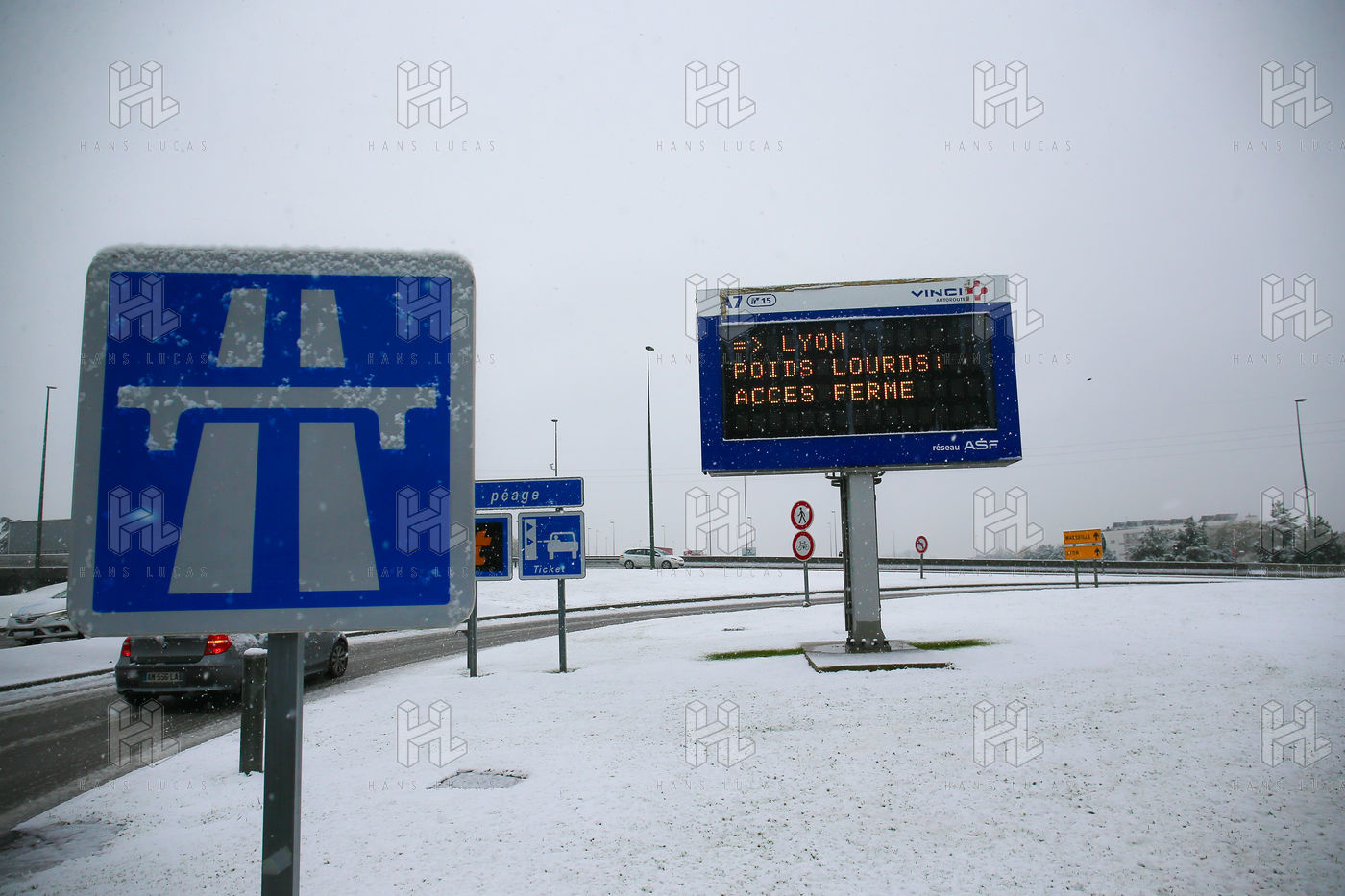 Premieres chutes de neige dans la Drôme qui a été placée en alerte orange. La circulation routière est fortement perturbée et l'accès à l'autoroute est interdit aux Poids-Lourds.