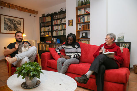 Martine, 77 ans, cohabite dans sa maison avec Rosine, 22 ans, et Baptiste 30 ans, deux étudiants dans le domaine du social. Au décès de son époux, Martine a decidé de partager son domicile dans le centre-ville de Valence en cohabitation avec des jeunes personnes qui ont un projet professionnel (études, apprentissage, formation, stage, période d'essai ...). L hébergement solidaire est conclu grâce à l'association Solidarité HABITATS et au réseau Logement Intergénérationnel Solidaire.