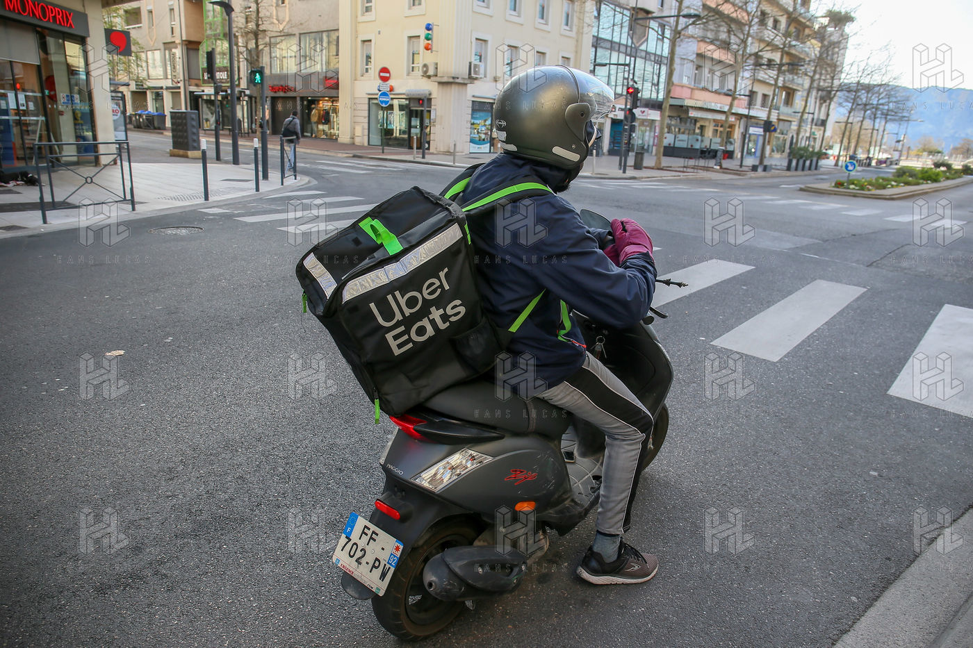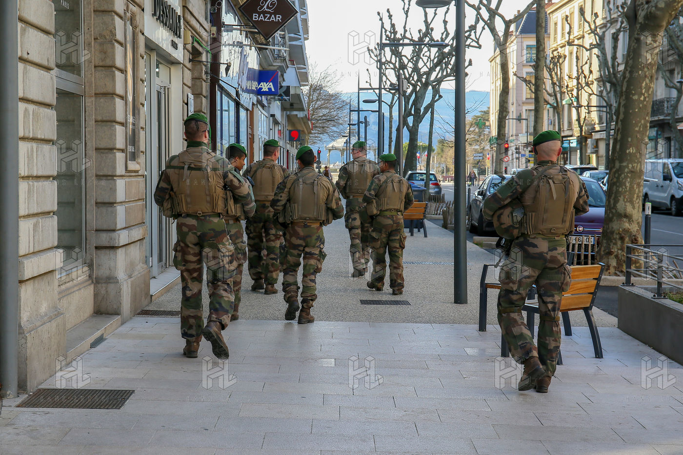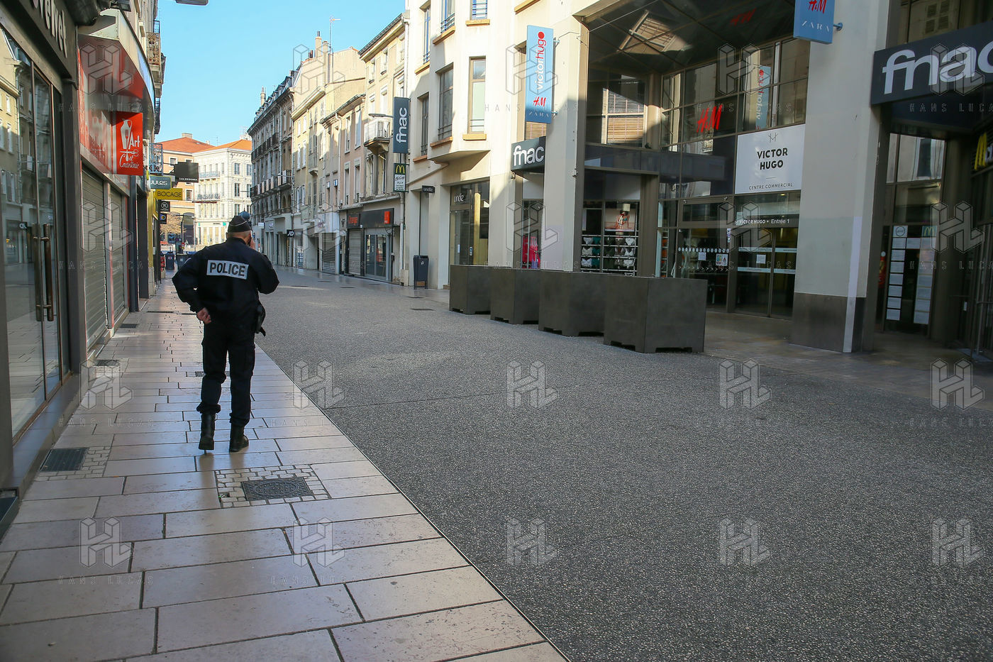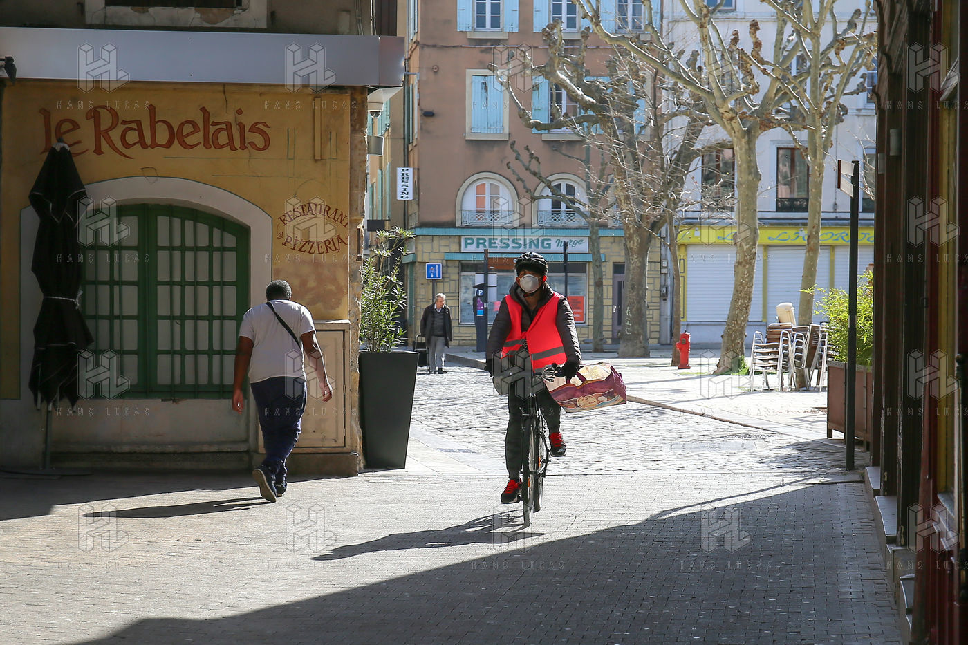 Ambiance dans les rues de Valence après la mise en place du confinement décrété suite à l'épidémie Covid 19.