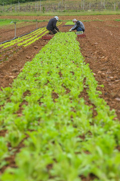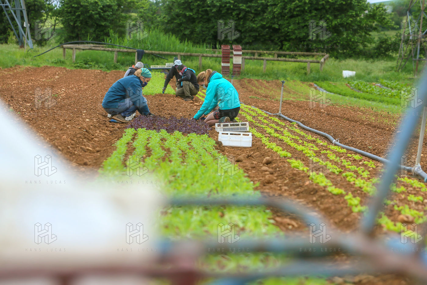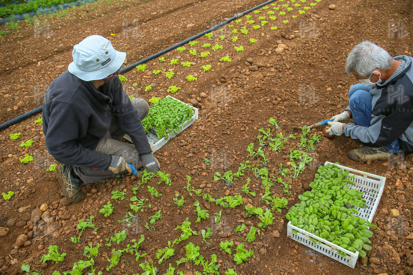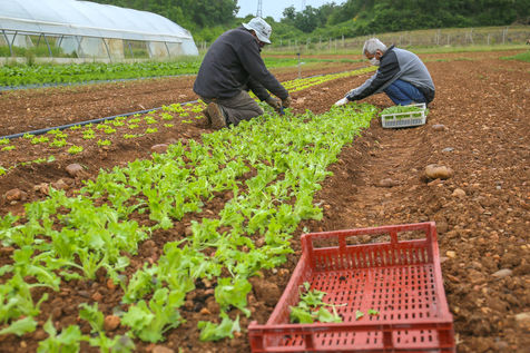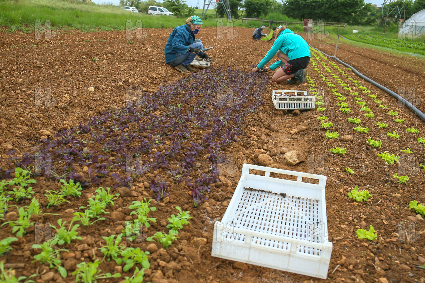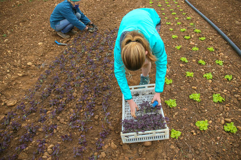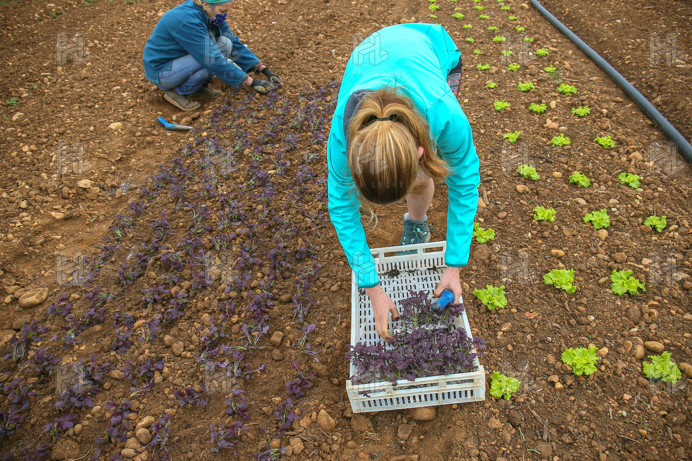 Suite à l'appel du ministre de l'Agriculture Didier Guillaume, plusieurs bénévoles participent aux travaux de plantation et de maraichage des Jardins Graine de Cocagne qui propose des paniers de fruits et légumes bio et 100% locaux.