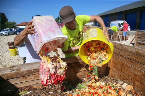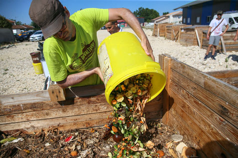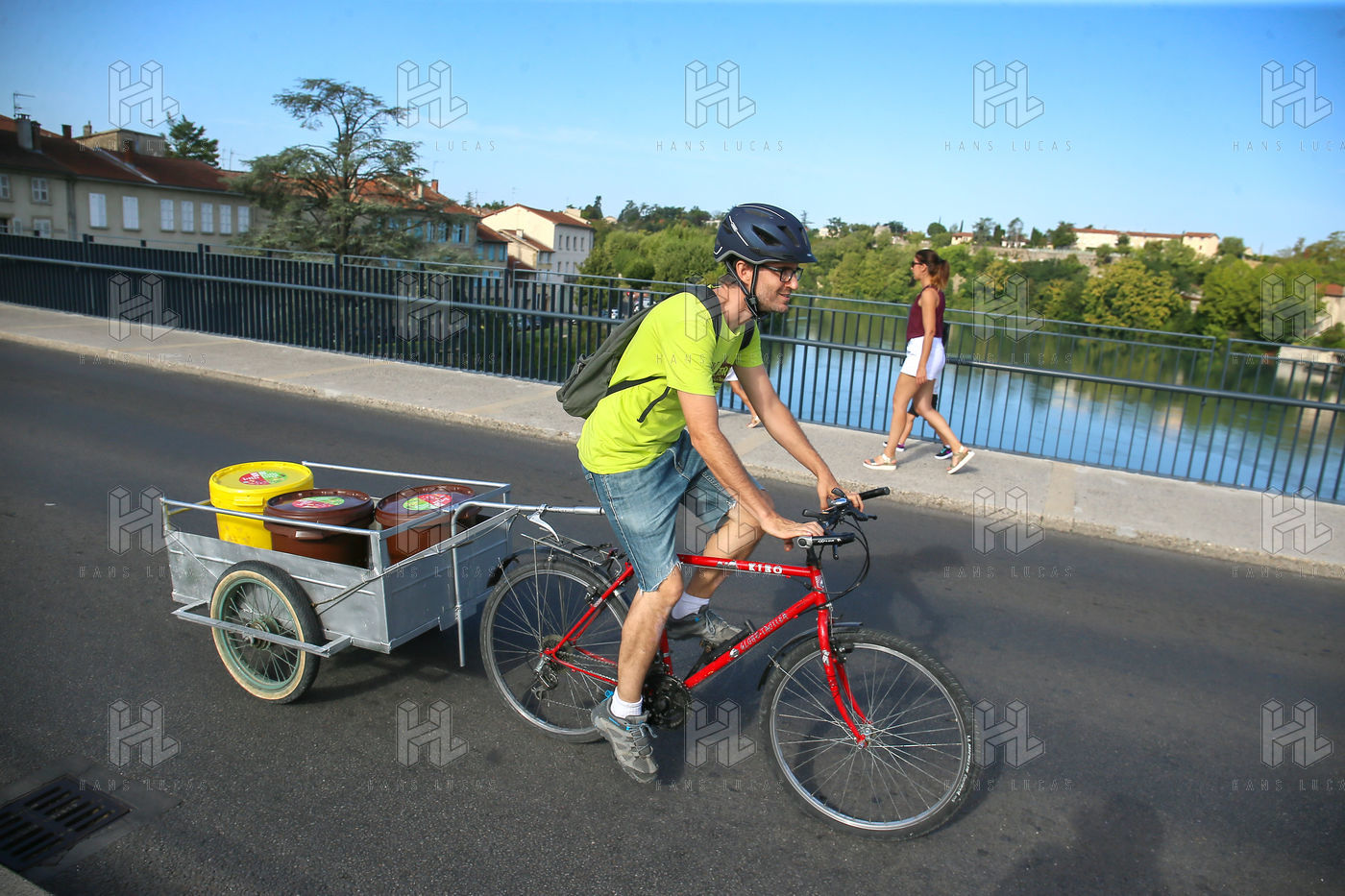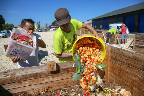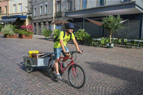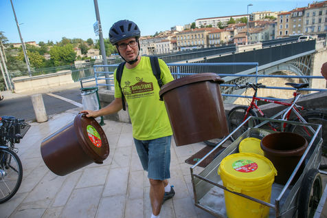 L'association ROVALTERRE effectue une collecte de biodéchets à vélo, deux fois par semaine, auprès des commerçants et professionnels de Romans-sur-Isère, pour les valoriser en compost. De l'épicerie au fleuriste en passant par le restaurant et le Mac Donald's, ils collectent plus de 500 kilos par semaine auprès de 12 partenaires.