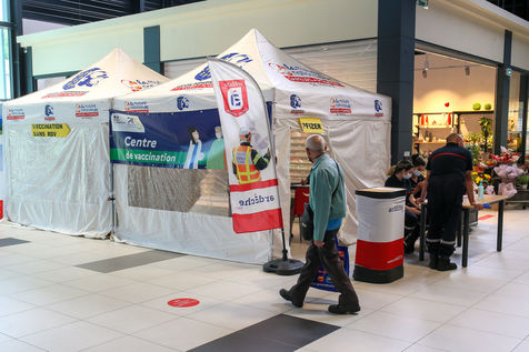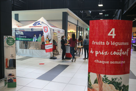 Pour encourager la vaccination contre le Covid 19, l'ARS de l'Ardèche et les Sapeurs Pompiers organisent une séance de vaccination sans rendez-vous dans la galerie marchande d'un supermarché Super U.