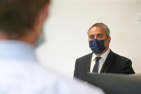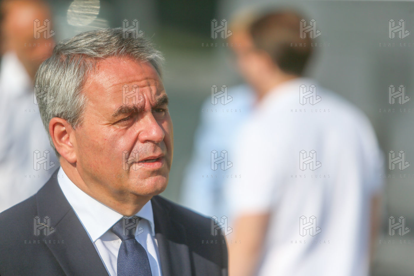 Candidat à l'élection présidentielle française de 2022, Xavier Bertrand visite l'entreprise GPA dans le cadre de son tour estival de France des territoires. GPA Group est un recycleur d'automobiles, numéro 1 de la pièce auto d'occasion.