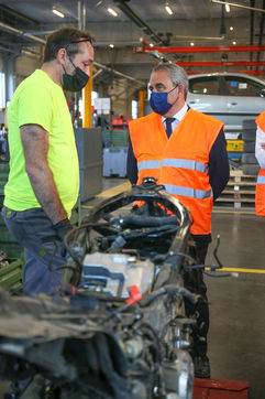 Xavier Bertrand, candidate for the French presidential election of 2022, is visiting the GPA company as part of his summer tour of France. GPA Group is a car recycler, number 1 in used car parts.