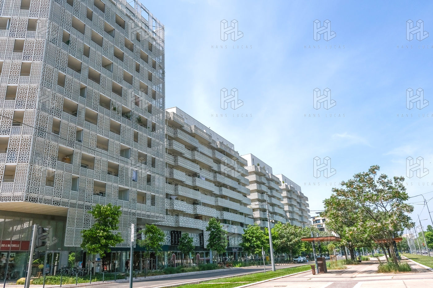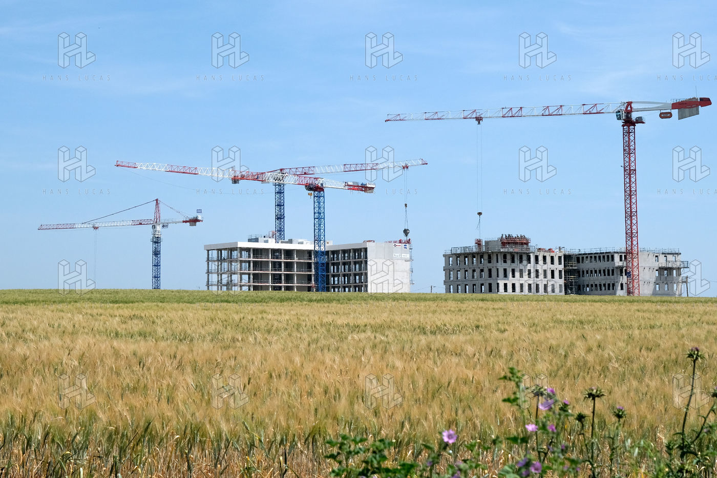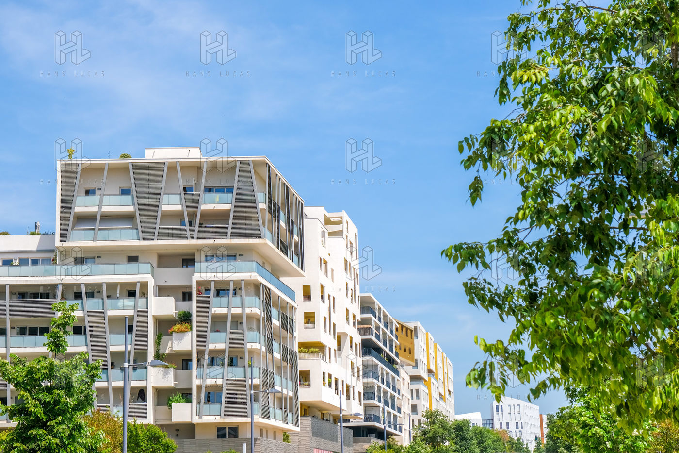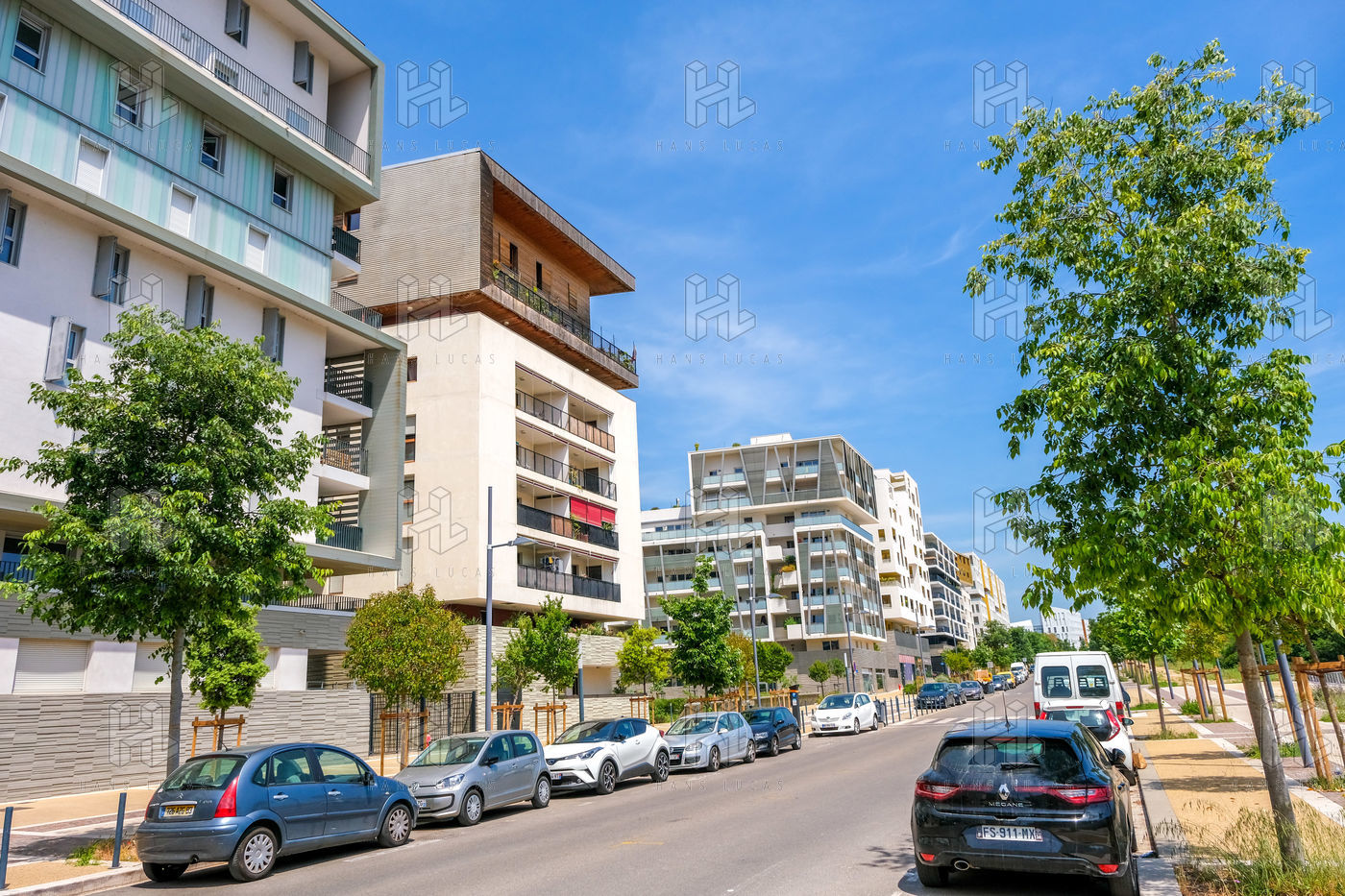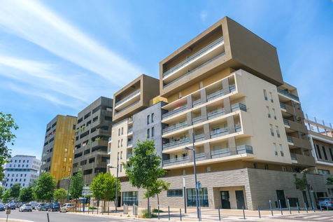 Le développement urbain de Montpellier se poursuit au sud de la Ville, en bordure d'autoroute. Les chantiers d'immeubles s'installent dans les terrains vagues, les espaces de végétation et dans les champs.