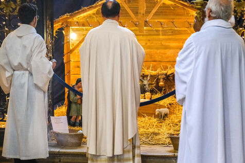 Christmas Day mass with blessing of the nativity scene at Nancy Cathedral.