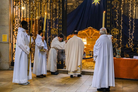 Messe du jour de Noël avec bénédiction de la crèche de la nativité à la Cathédrale de Nancy.