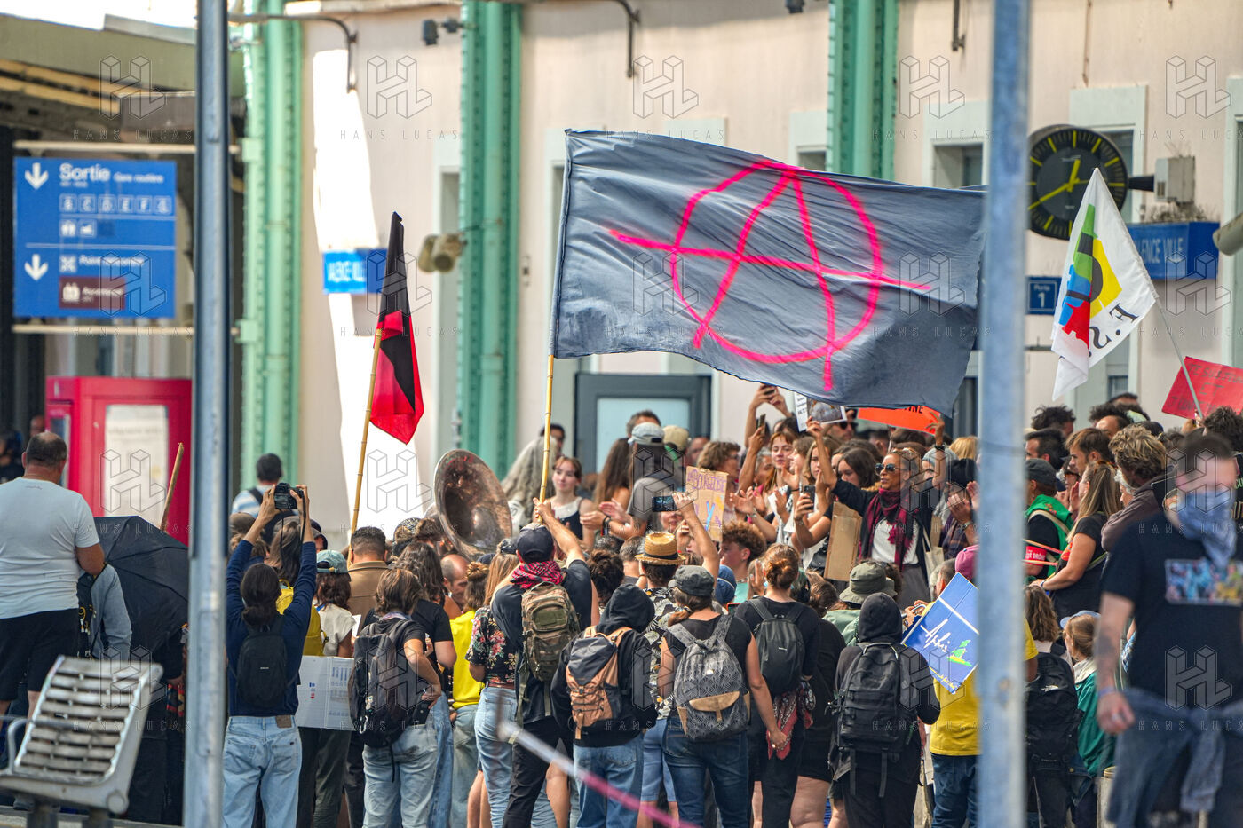 Up to 150 protesters occupied the tracks at Valence-Ville train station during the "Block Everything" protest. An initial action led to the interruption of regional trains and freight trains in both directions. After mediation with government services, the occupiers left the area. But a few minutes later, "blockers" re-entered the tracks.