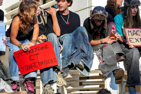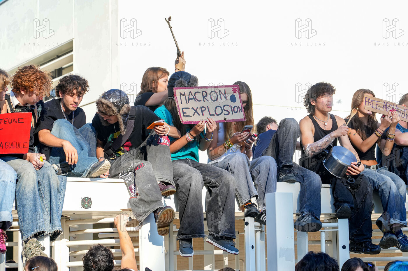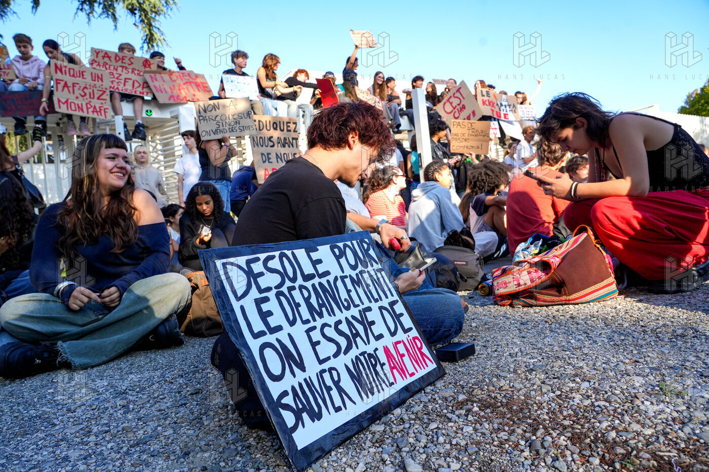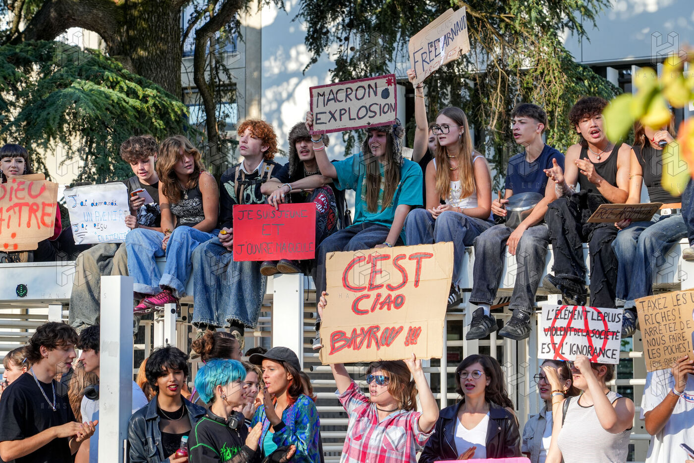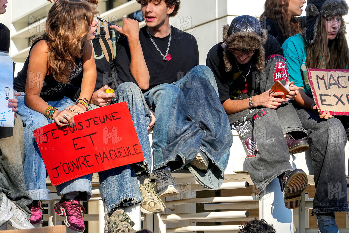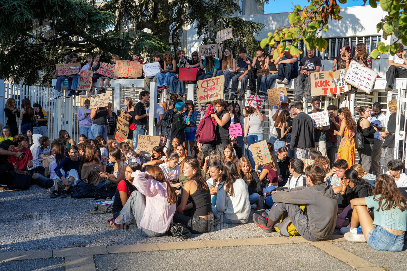 Middle school, high school and senior high school preparation class students from the Camille Vernet school campus were unable to enter the establishment during the morning, blocked by around a hundred young demonstrators, sitting in front of the entrance gates, as part of the protest on Wednesday September 10 "Let's Block Everything".