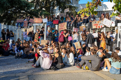 Les collégiens, lycéens et étudiants des classes préparations aux grandes écoles de la cité scolaire Camille Vernet n'ont pas pu rentrer dans l'établissement durant la matinée, bloqué par une centaine de jeunes manifestants, assis devant les grilles d'entrées, dans le cadre de la protestation du mercredi 10 septembre "Bloquons Tout".