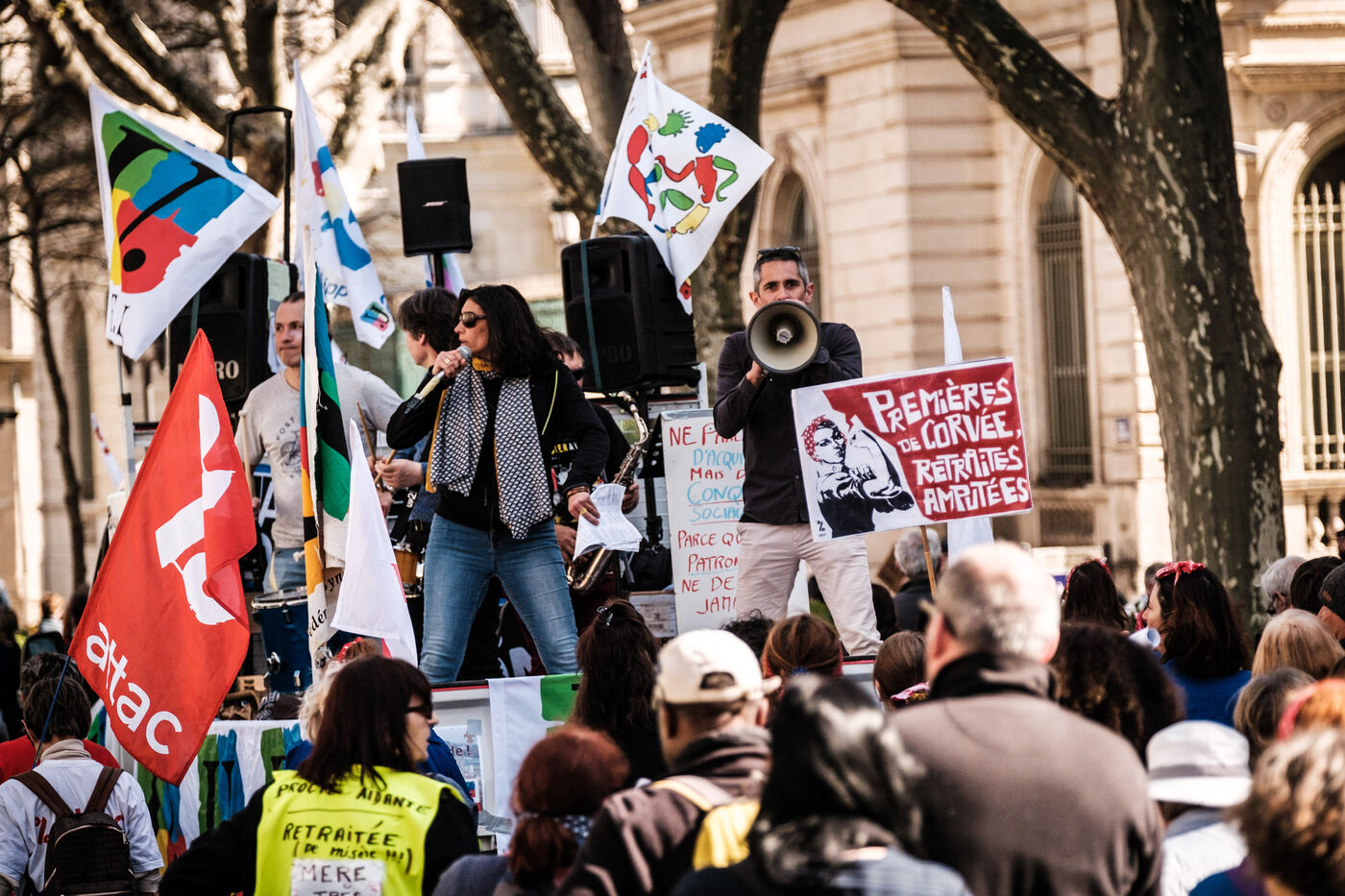 France, Nimes, Gard, 2023-03-28. New act of the inter-union and inter-professional mobilization against the pension reform. Mood of the day : "we don't give up". From the Jardins de la Fontaine to the prefecture, it gathered 18 000 demonstrators according to the CGT, 4000 according to the prefecture.