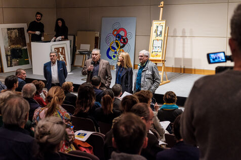Ensemble pour l'Ukraine : la vente aux enchères solidaire organisée par la ville de Nîmes et ses acteurs culturels, au profit de la Croix Rouge Ukrainienne. Le 26/03/2022.