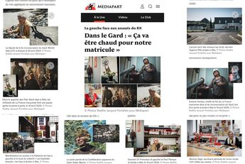 Noëllie Jacquot-Portefaix Publications Séries / Archive Culture — Environnement — Politique — Société — Spiritualité — Sélection de séries Santé Magazine, 03/09/2025 Reporterre, 18/07/2025 L'Humanité, 27/06/2025. La Vie, 28/11/2024 La Croix L'Hebdo, 26/10/2024 Nouvel Obs, 19/07/2024 Nouvel Obs, conférence, 18/07/2024 Mediapart, reportage 22/06/2024 La Vie, Portrait, 20/06/2024 Hiam Abbass pour l'Humanité, 02/05/2024 Mediapart, reportage 27/04/2024 La Vie, reportage Portrait, Santé Magazine n. 580 Santé Magazine n. 580 Libération, Portrait Suzanne, 13/11/2023 Libération, Portrait Clémentine et Suzanne, 13/11/2023 Le Parisien, le ministre de la Santé Aurélien Rousseau à Saint-Hilaire-De-Brethmas, 25/08/2023. Proteste, mars 2023 Revue Mission, Georgina Dufoix Midi Libre