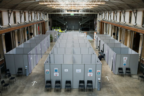 Centre de vaccinations du 104. L espace culturel le cent quatre a été réhabilité en centre de vaccination, depuis le debut du mois de janvier la mairie de Paris a ouvert 19 centres comme celui ci afin de procéder a la vaccination contre la covid 19.