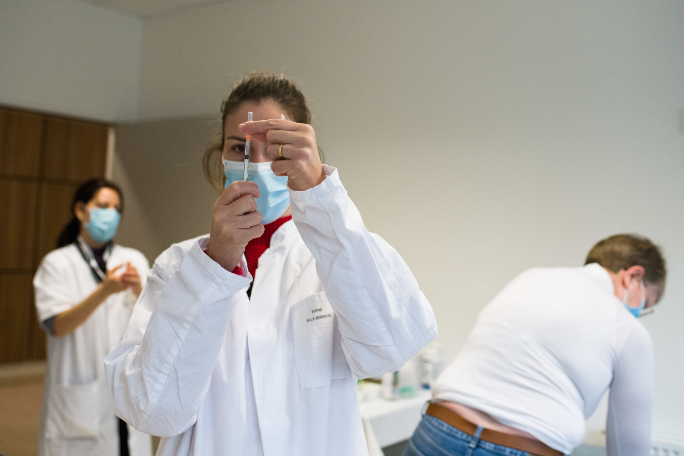 Medical staff and patients from the retirement home Villa Borghese are getting the Pfizer vaccines.