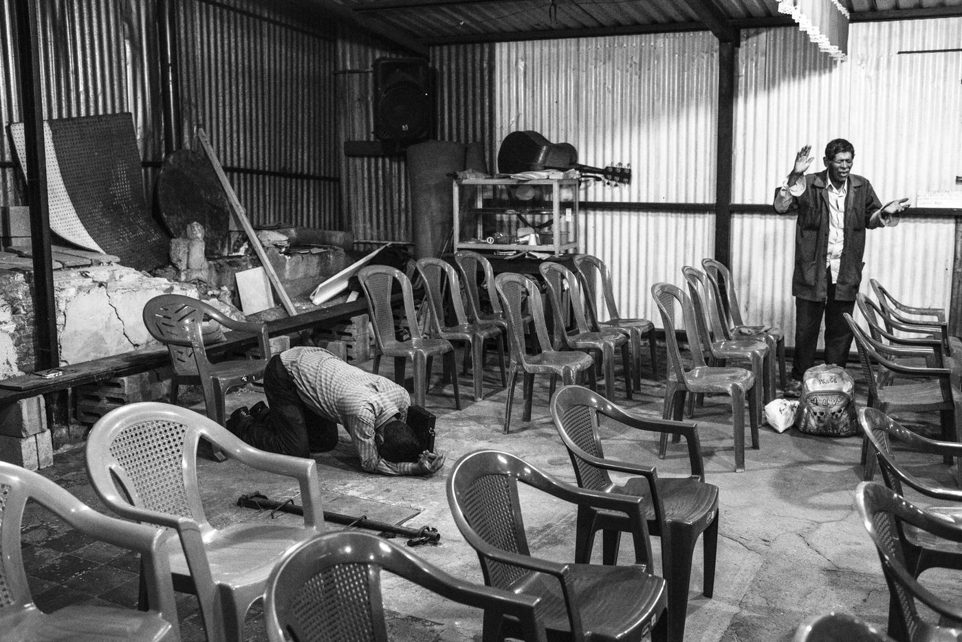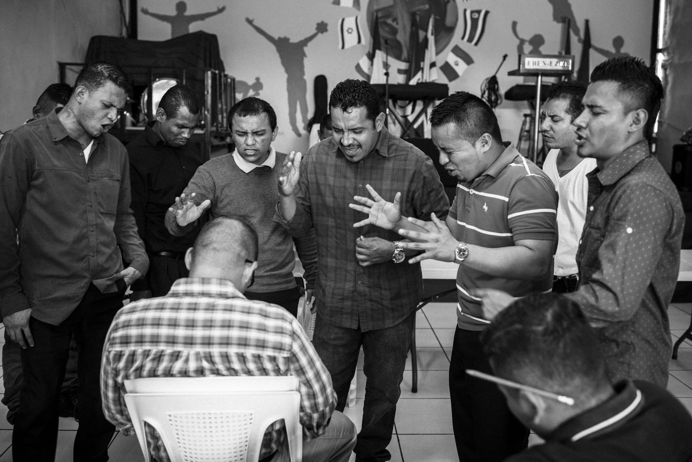When I met Edwin for the first time, he was at the Eben Ezer church at the time of the worship. Edwin was praying, closed eyes, with his hands pleading to be heard. His shirt collar was tighter adjusted. But, at each head movement turned to the sky, part of the ?Eighteen? tattooed around his neck appeared. Through the name of his former gang, it was like if his past belonging to the gang was bellowing to claim him and trying to dominate him. It was one of the expression of an internal struggle. And I asked me how this radical change could be possible, what were the mechanisms, both personal and social, that allowed him to break with a fatal destiny dedicated to criminality.