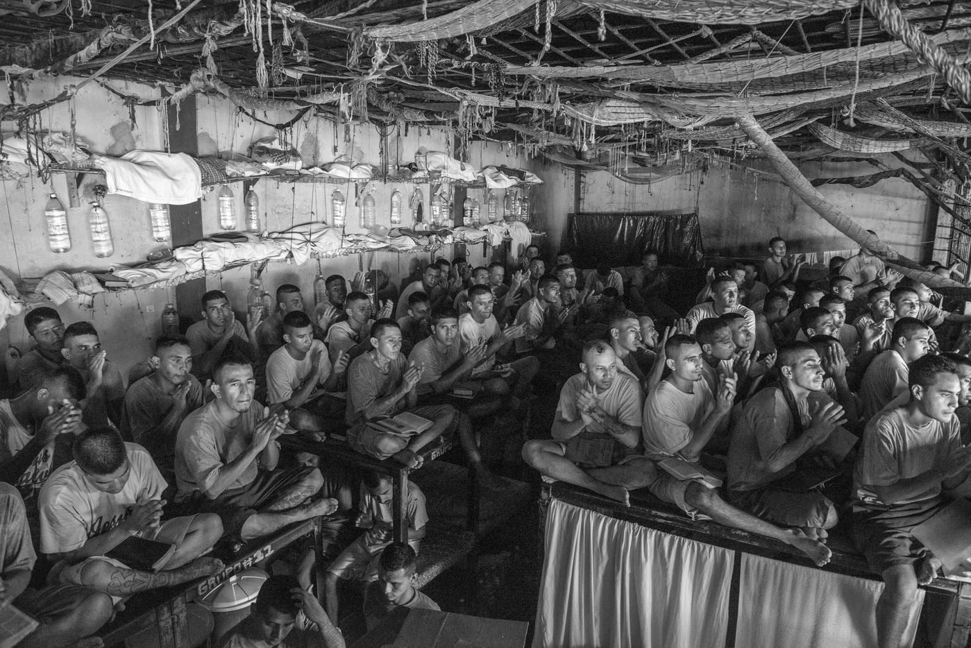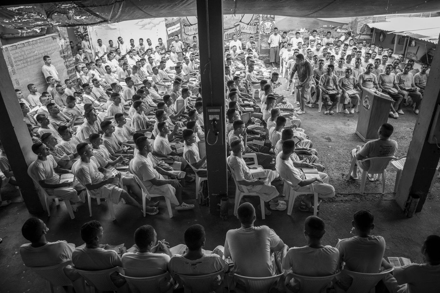 At the same time, the "extraordinary measures" were put in place. El Salvador had the highest homicide rate in the world. Highly contested by international institutions, these measures completely isolated the prisons where gang members were imprisoned. The goal was to break the chain of command between the incarcerated leaders and their base in the neighborhoods. Today, extraordinary measures have begun to be taken in La Gotera Prison. Because the prison, as an evangelist jail, no longer represents a danger. But as religion took power, politics measures seems to hold back.