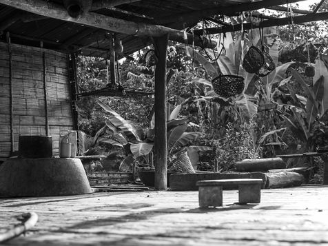 The photographs are organized in a double-panel series, showing the lost territory on the left and the displaced population on the right. Today, the displaced population have returned to their communities, but the dangers they face remain. Upper Baudó territory is a strategic area for all the armed groups, including the Colombian army, since it is a corridor to the Pacific Ocean. Currently, the population is living there with little food and confined in their homes. They fear going out and potentially having dangerous encounters on the way to their fields or urban centers.