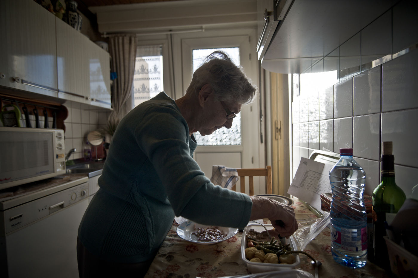 Une personne de la mairie lui amène chaque jour ses repas. Ses enfants et ses petits enfants passent aussi beaucoup de temps avec elle, pour le repas de midi surtout. Les docteurs et infirmières viennent aussi de temps en temps.