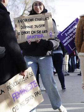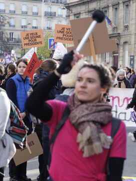 Grand marche du 25 novembre 2023 pour la journee internationale pour l'éradication des violences faites à l'egard des femmes. Celle ci se déroulais de la place de la Nation vers la phace de la République. En tête du cortège parisien marchaient les familles de victimes de féminicides, avec des portraits de leurs proches disparues. Partout, la couleur violette dominait le cortège.