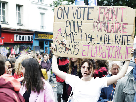 The results of the European elections put the Rassemblement National list, led by Jordan Bardella, in the lead. In response to this situation, Emmanuel Macron set up the National Assembly. For this new campaign, the various parties forged alliances. The Nouveau Front Populaire was born, bringing together a large number of left-wing parties. This coalition is made up of other union-type organizations, and they organized this demonstration on June 15, to call for a barrage against the RN.