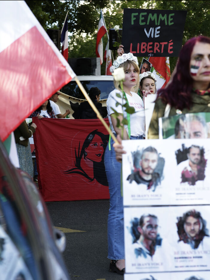 Le mouvement Femme Vie iIberté manifestait ce dimanche, 15 septembre pour commémorer les deux ans de la mort de Mahsa Amini arrêtée par la police des mœurs pour un voile mal porté. Un hommage a été également rendu au rappeur Toomaj Salehi, et au chanteur Shervin Hajipour tout deux actuellement emprisonner en Iran pour leur engagement dans le mouvement Femme Vie Liberté.De nombreuses affiches portés par les participants rendaient hommage à Reza Pahlavi, prince héritier d'Iran et fils aîné du dernier shah. Son épouse, la princesse, Yasmine Pahlavi était présente entoure d’un sérieux service d’ordre.