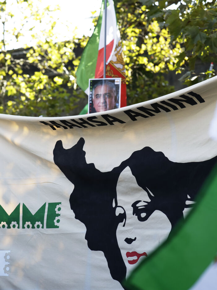 The Femme Vie iIberté movement held a demonstration on Sunday 15 September to commemorate the two-year anniversary of the death of Mahsa Amini, who was arrested by the morality police for wearing a headscarf incorrectly. Tribute was also paid to rapper Toomaj Salehi and singer Shervin Hajipour, both currently imprisoned in Iran for their involvement in the Femme Vie Liberté movement. Many posters carried by the participants paid tribute to Reza Pahlavi, Crown Prince of Iran and eldest son of the last Shah. His wife, Princess Yasmine Pahlavi, was present, surrounded by an impressive security team.