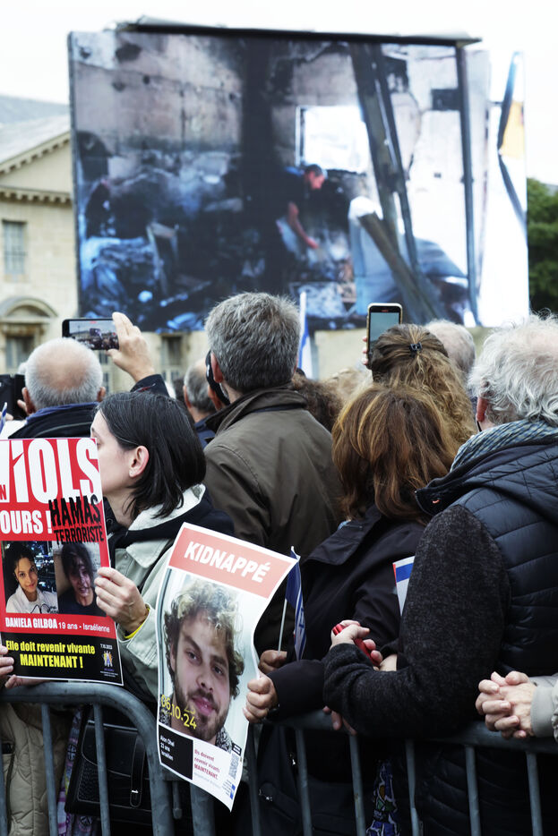 Place de Fontenoy, un certain nombre d'organisation de la communauté juive se sont réunis sous l'impulsion du KKL France"Keren Kayemeth Leisraël-Fonds" pour marquer les un ans de l'attaque du Hamas sur le territoire israélien. Un certain nombre de personnalités étaient présente, l'imam de Drancy Hassen Chalghoumi, le directeur pour l'Europe du conseil mondial des imams, l'imam Mohamed Mehdizadeh et Ariel Goldman, président du fsju "Le Fonds Social Juif Unifié" et de la fondation du judaïsme.