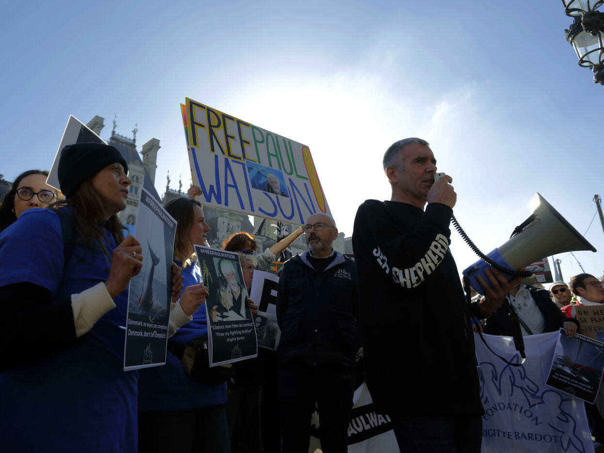 Incarcerated in Nuuk, capital of the autonomous Danish territory, since July 21, the founder of Sea Shepherd had his fourth request for release rejected on Wednesday October 23. The Greenlandic court extended his detention until November 13. It was against this backdrop that Sea Shepherd members called for a rally on the Place de l'Hôtel de Ville in Paris. Members of Brigitte Bardot's association joined the action.